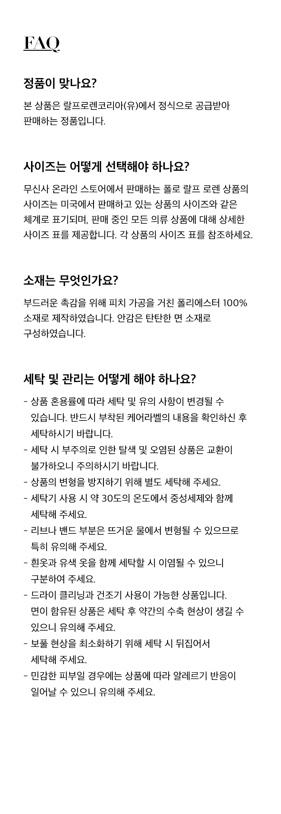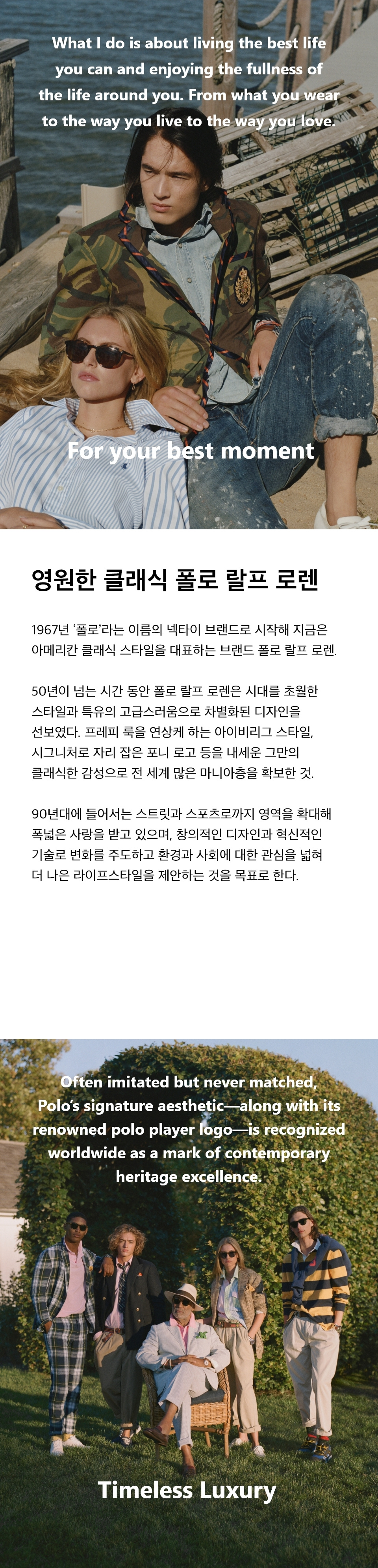 폴로 랄프 로렌(POLO RALPH LAUREN)은 미국을 대표하는 디자이너 랄프 로렌이 1967년에 시작한 브랜드입니다. 폴로 랄프 로렌의 제품은 실용적이면서 품격을 갖춰 꾸준한 인기와 사랑을 받고 있습니다.