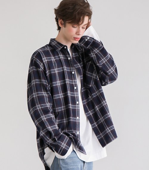 자이언트핏 몬스터 체크셔츠 (빈티지네이비)