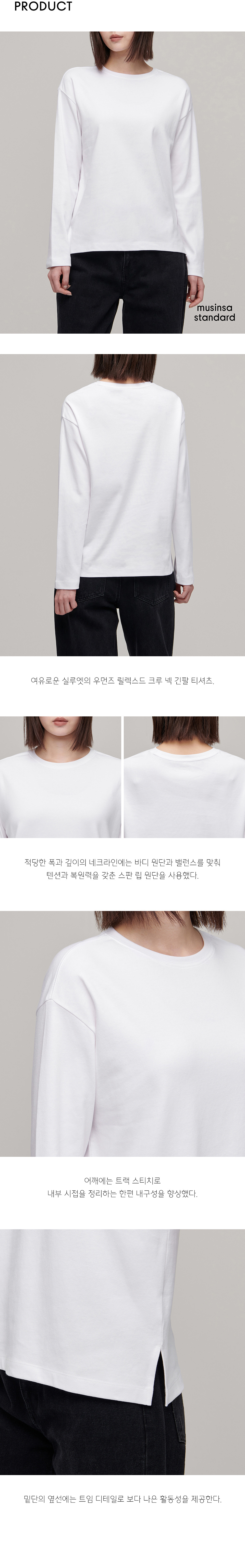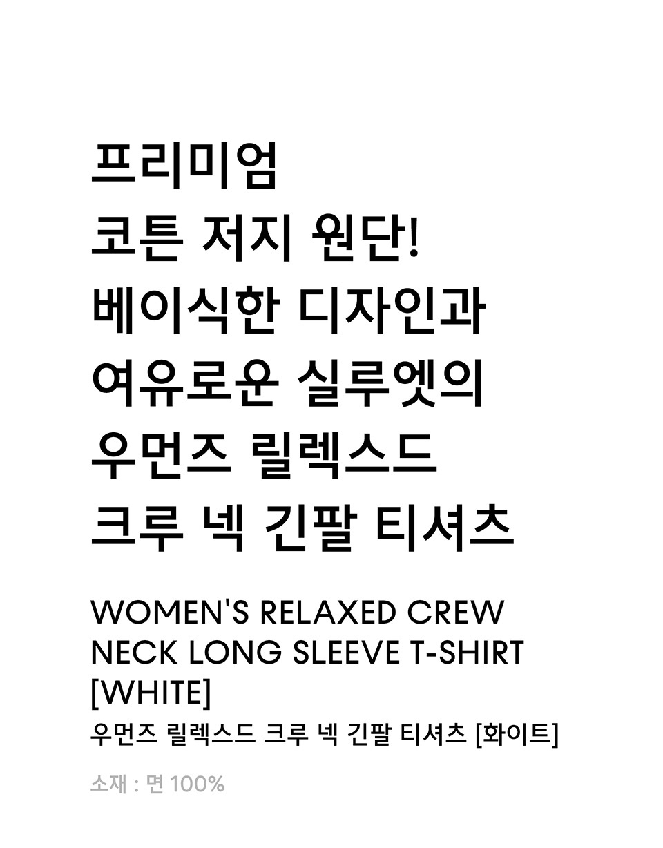 우먼즈 릴렉스드 크루 넥 긴소매 티셔츠 [화이트]