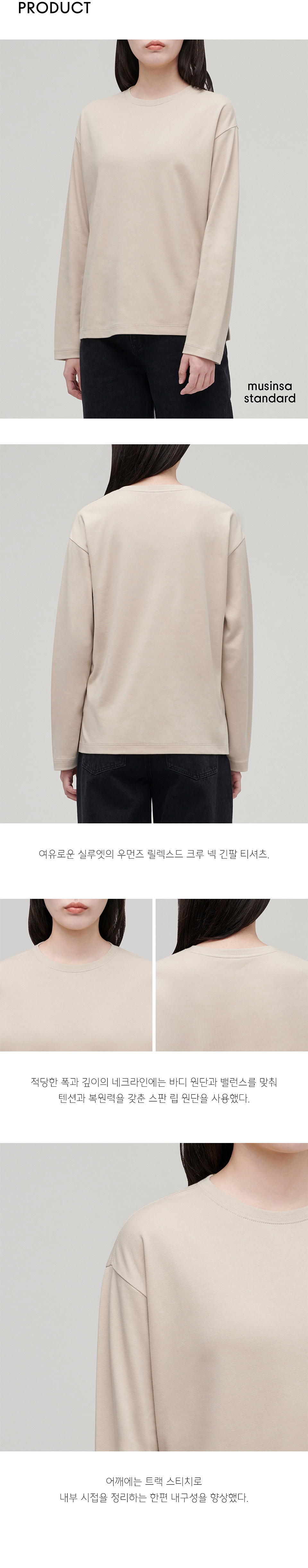 우먼즈 릴렉스드 크루 넥 긴소매 티셔츠 [라이트 베이지]