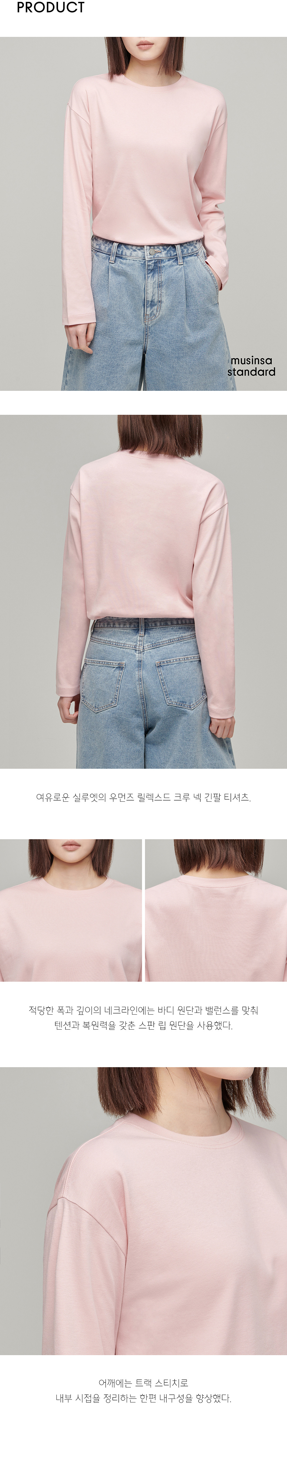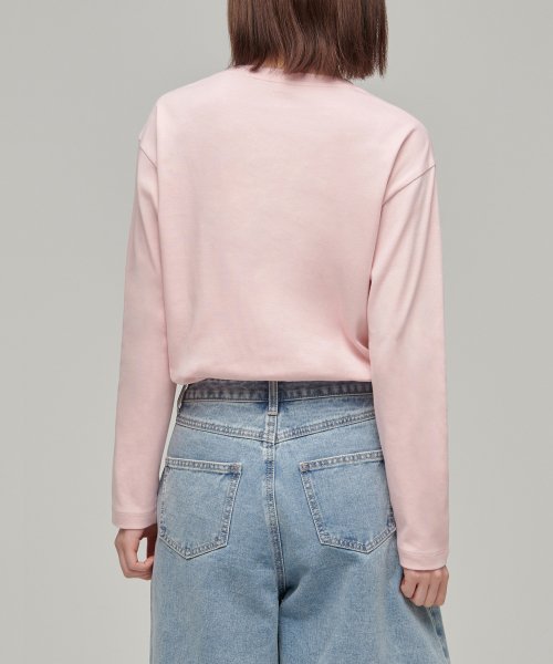 우먼즈 릴렉스드 크루 넥 긴소매 티셔츠 [블러쉬 핑크]