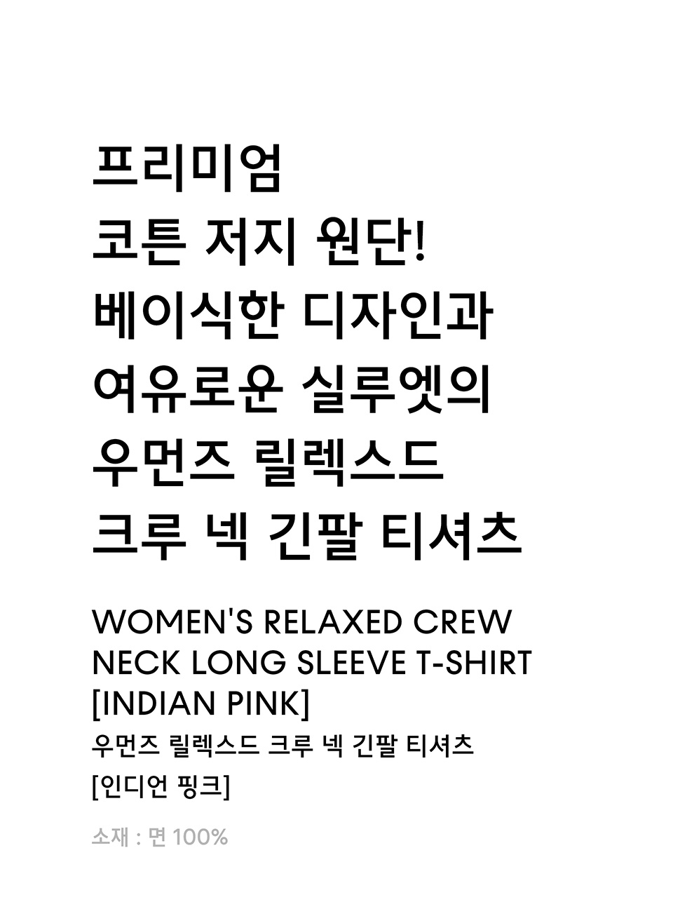 우먼즈 릴렉스드 크루 넥 긴소매 티셔츠 [인디언 핑크]