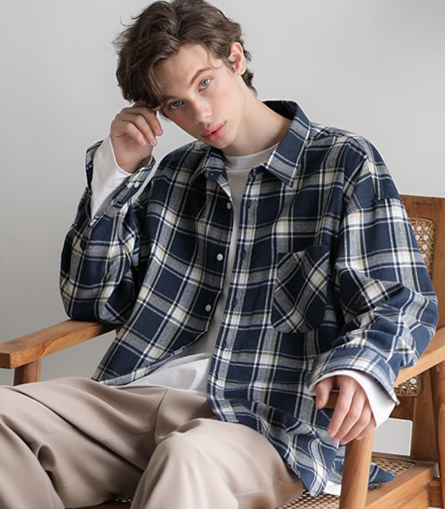 자이언트핏 몬스터 체크셔츠 (빈티지네이비)
