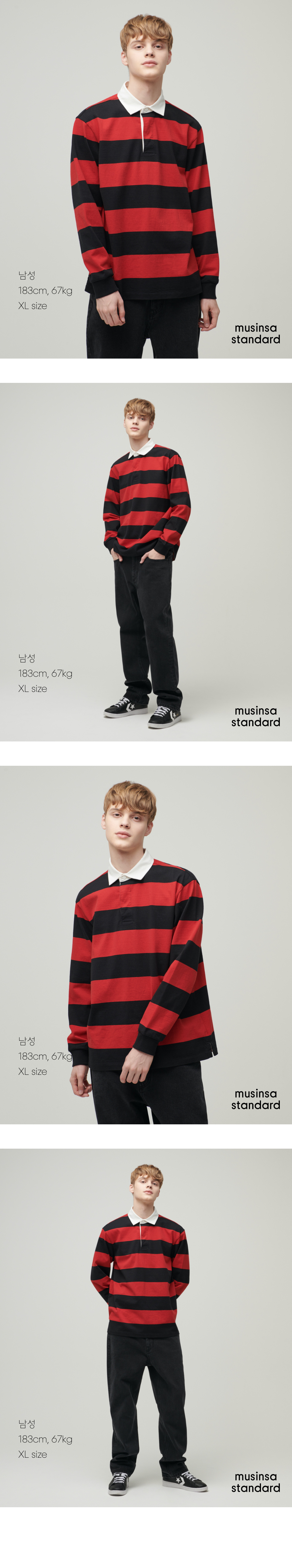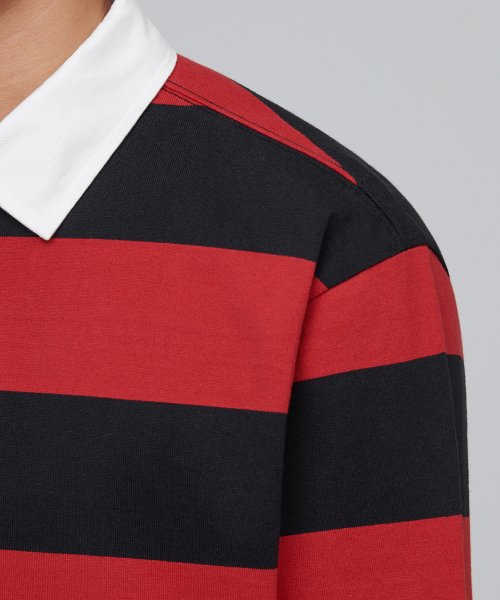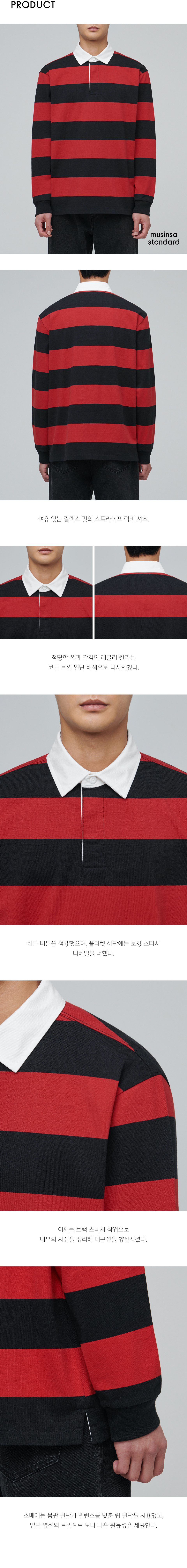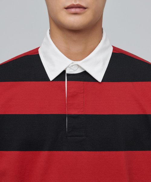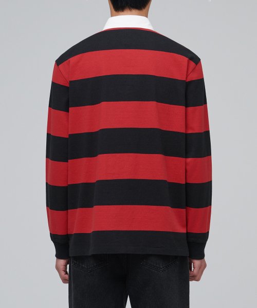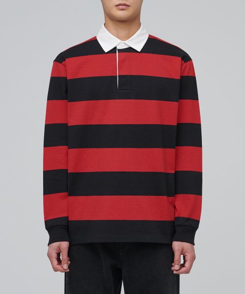 스트라이프 럭비 셔츠 [블랙/레드]