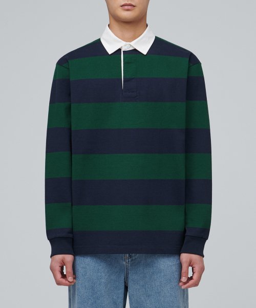 스트라이프 럭비 셔츠 [네이비/그린]