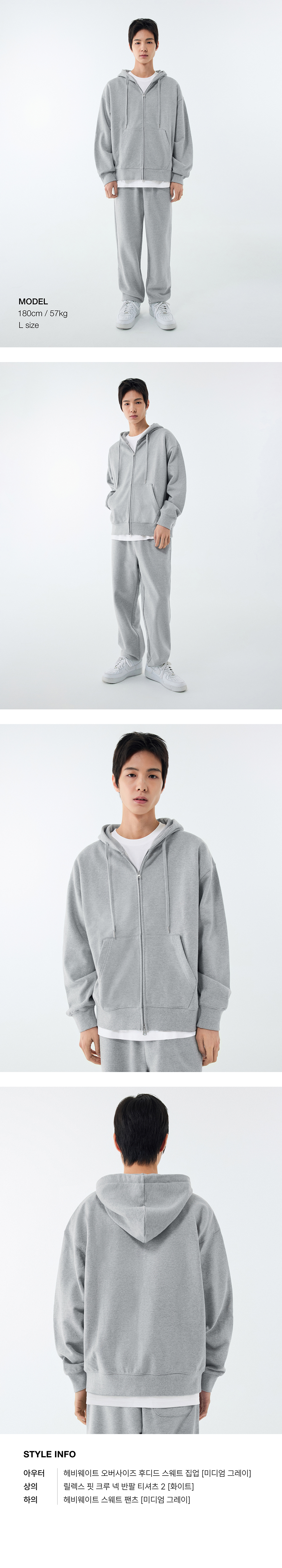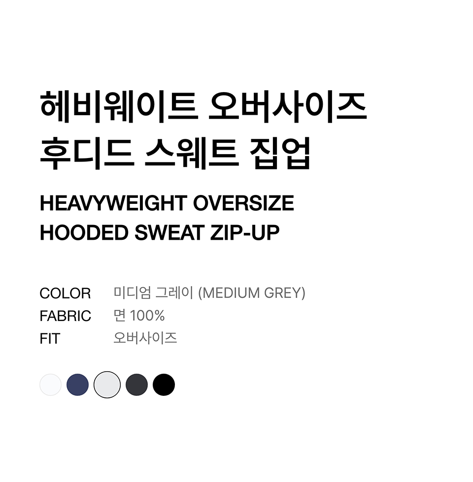 헤비웨이트 오버사이즈 후디드 스웨트 집업 [미디엄 그레이]