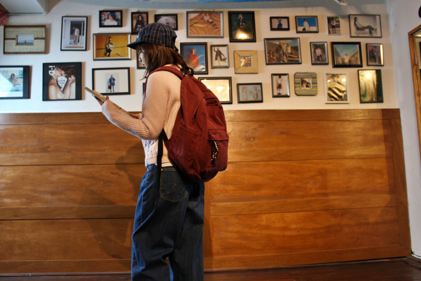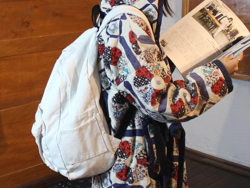 15인치 노트북까지 충분히 수납할 수 있는 공간이 따로 있으며 매었을 때 자연스럽게 쳐지는 모양이 매력적인 캔버스 백팩입니다.