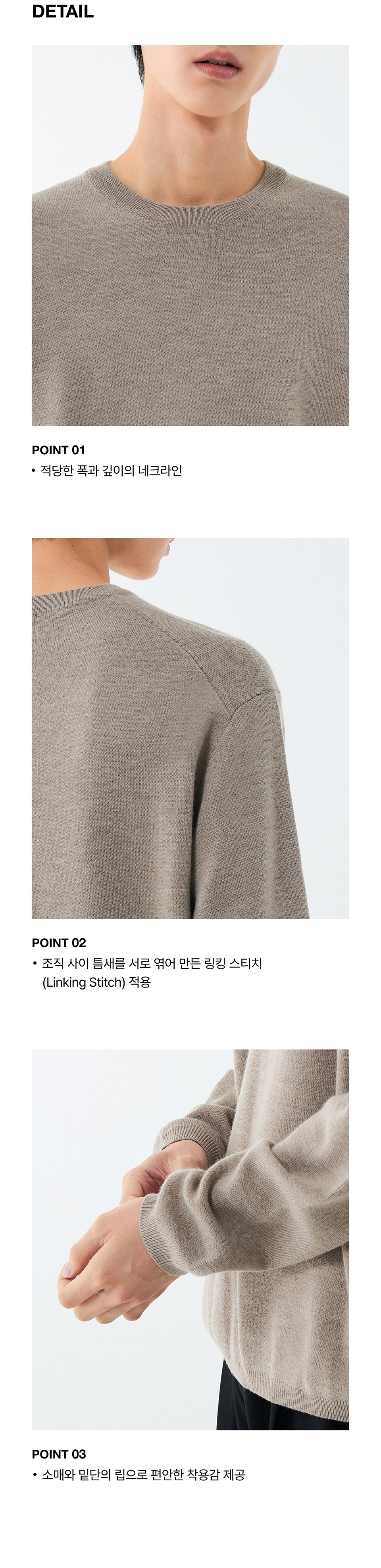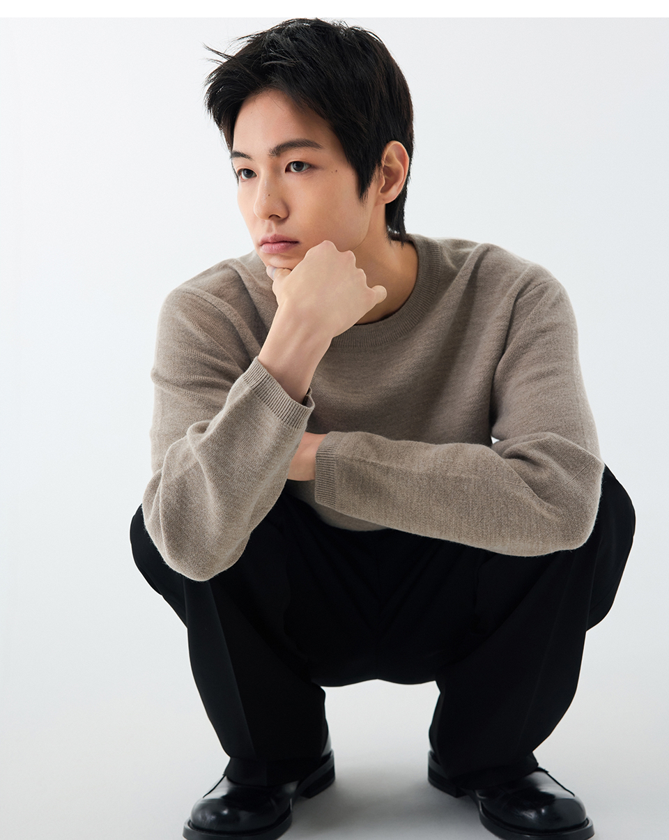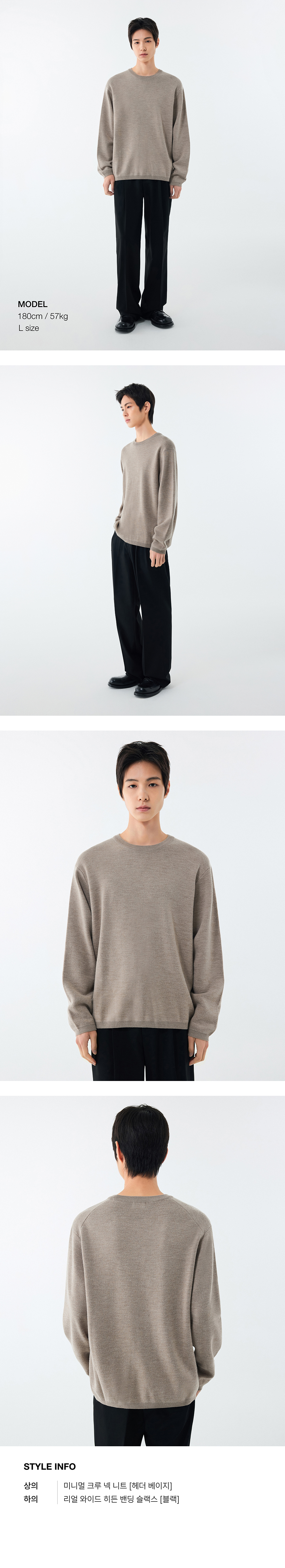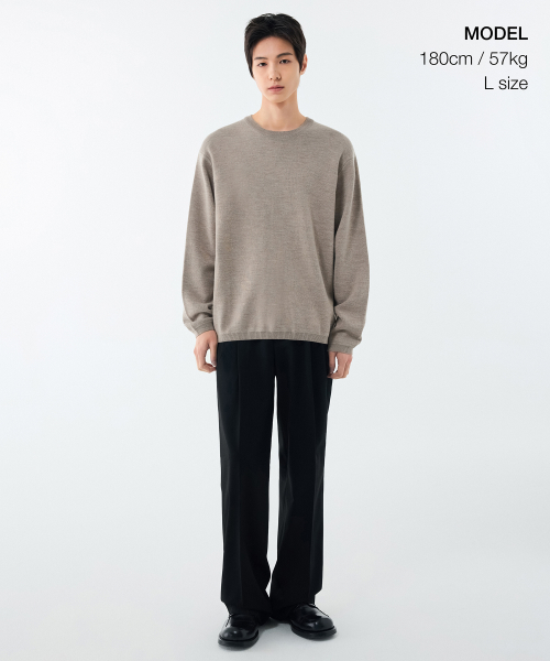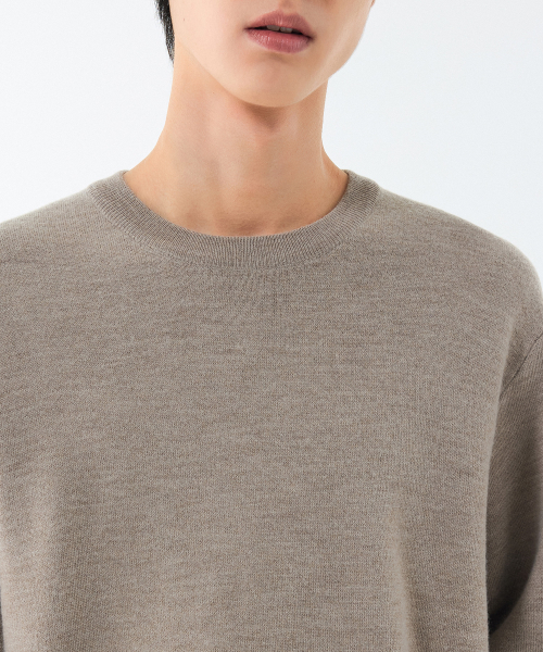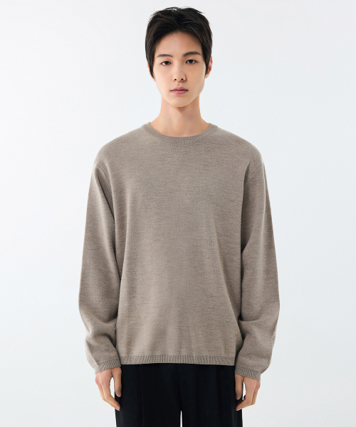 미니멀 크루 넥 니트 [헤더 베이지]