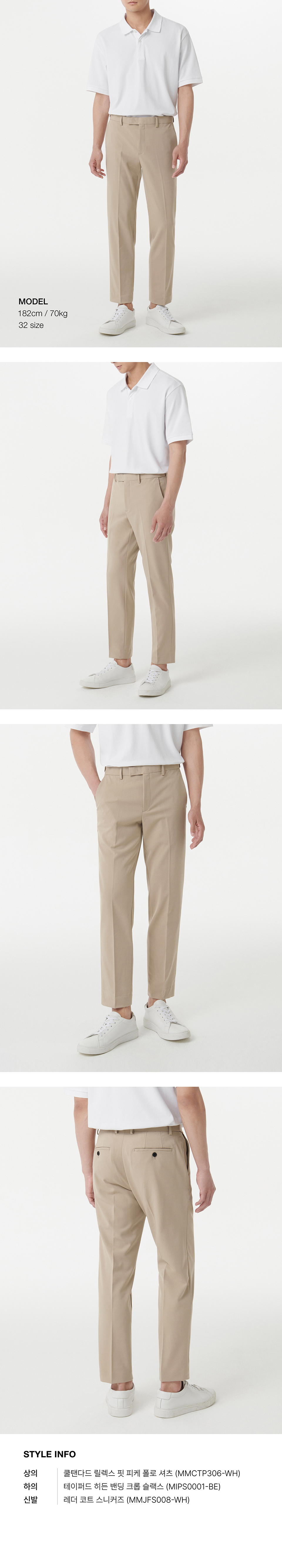 테이퍼드 히든 밴딩 크롭 슬랙스 [라이트 베이지]
