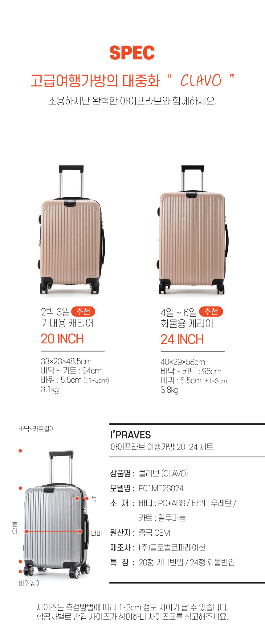 P01ME2S024 / 캐리어세트 20+24인치 기내용 화물용 확장형