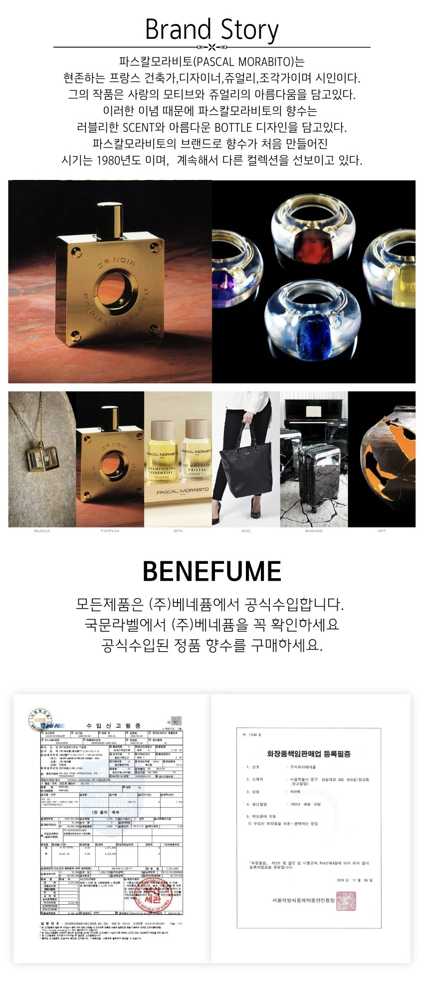 파스칼 모라비토(PASCAL MORABITO)는 프랑스의 건축가이자 디자이너, 주얼리 조각가, 시인으로도 활동하고 있는 파스칼 모라비토(Pascal Morabito)가 선보이는 향수 브랜드입니다. 사랑을 모티브로 아름다운 주얼리를 선보인 파스칼 모라비토의 향수는 사랑스러운 향과 아름다운 병의 디자인을 담고 있습니다