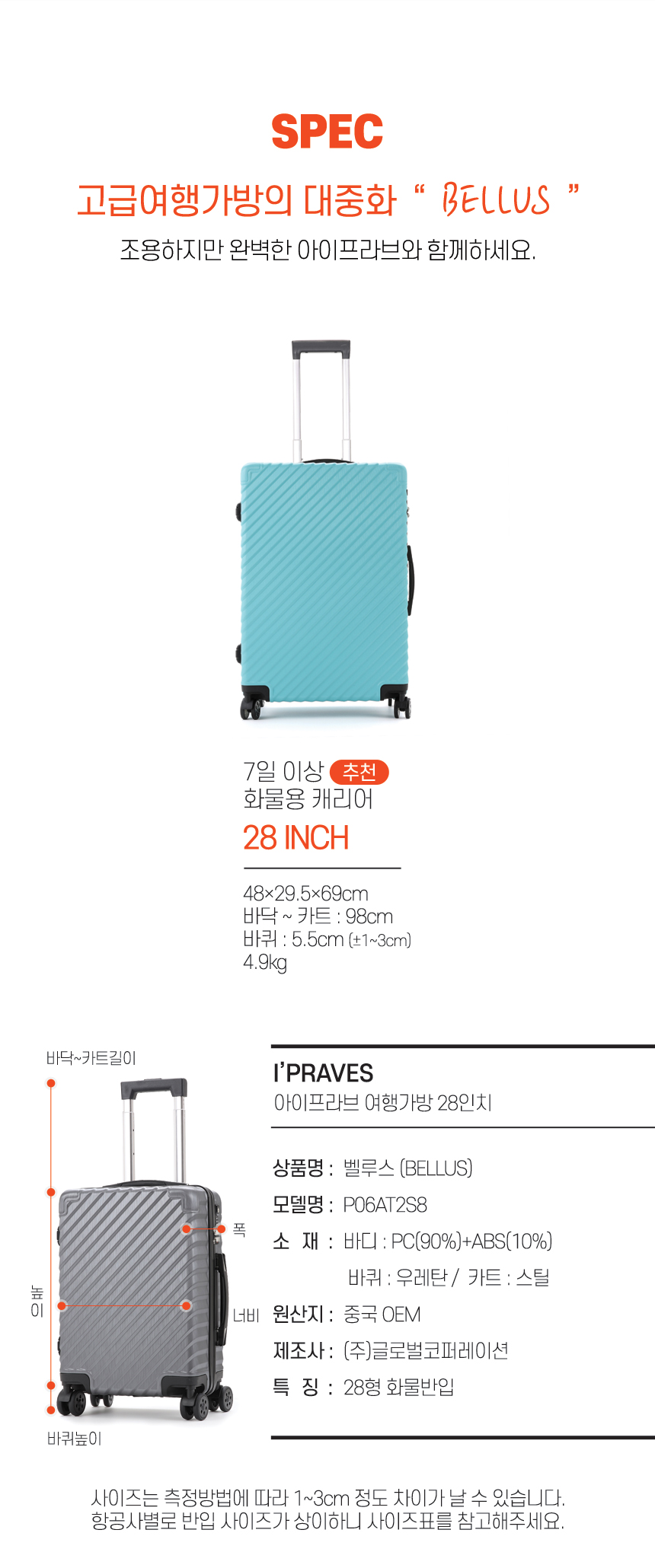 벨루스 - P06AT2S8 / 화물용 캐리어 28인치 폴리카보네이트 TSA락 여행가방