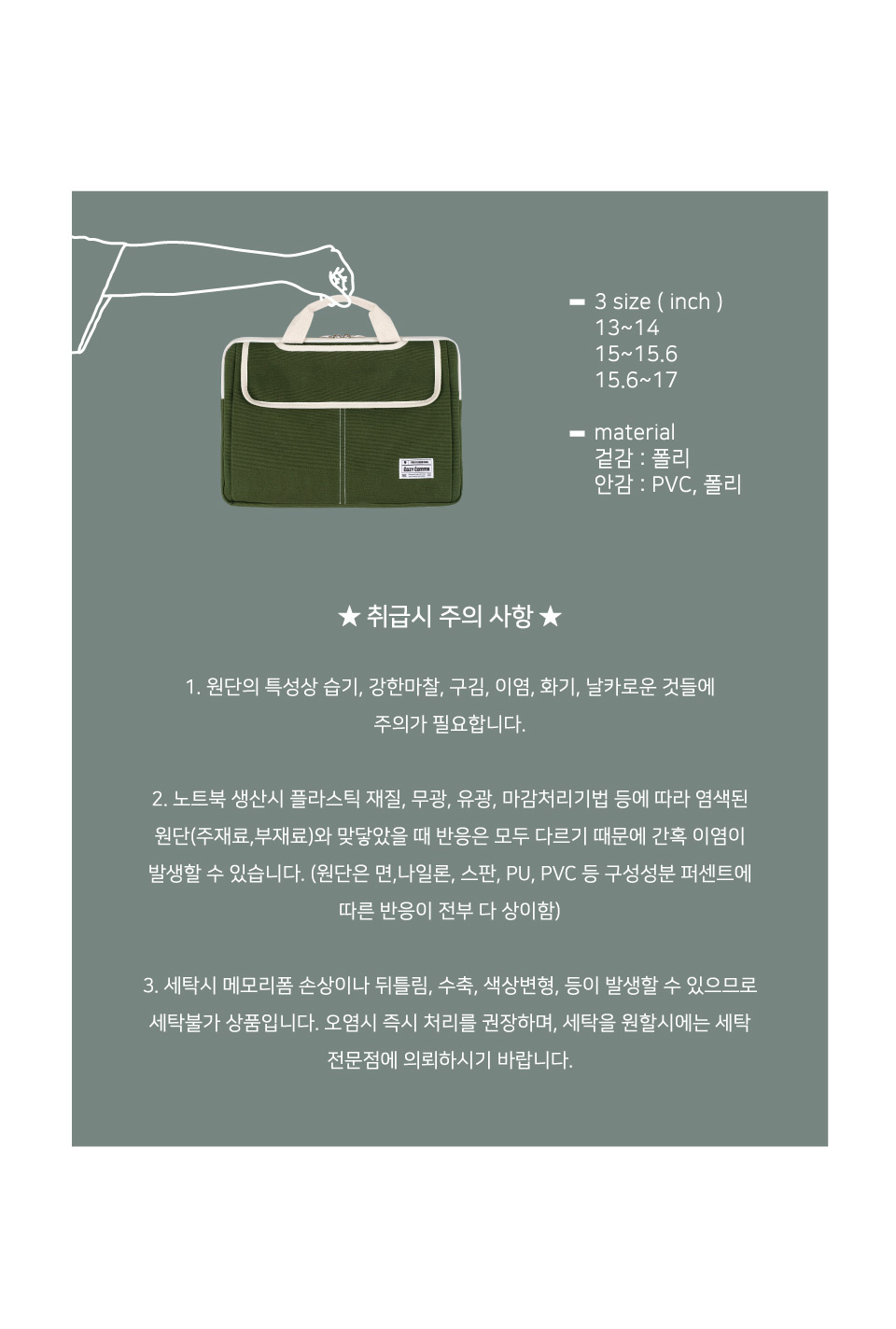내맘대로 노트북파우치_올리브(3size)