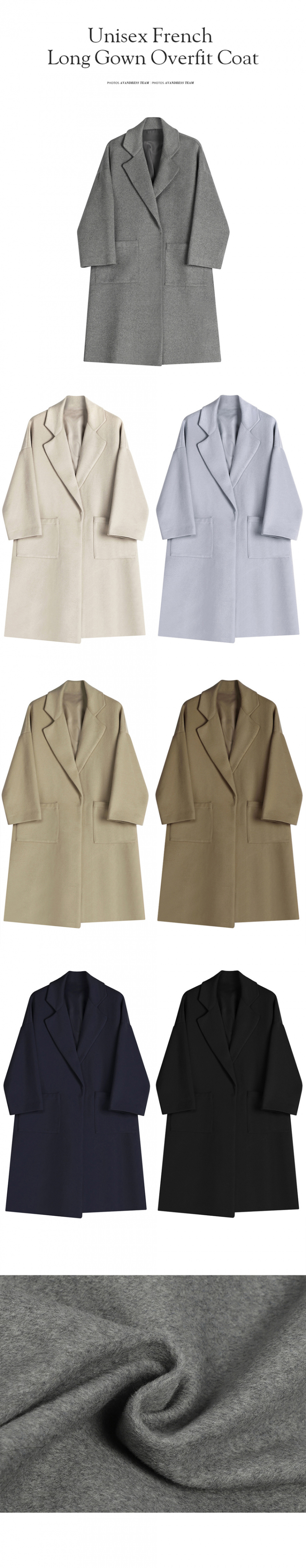 유니섹스 프렌치 롱 가운 오버핏 코트 7 COLOR