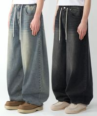 빈티지 프론트 워싱 와이드 벌룬 데님 팬츠 4Color