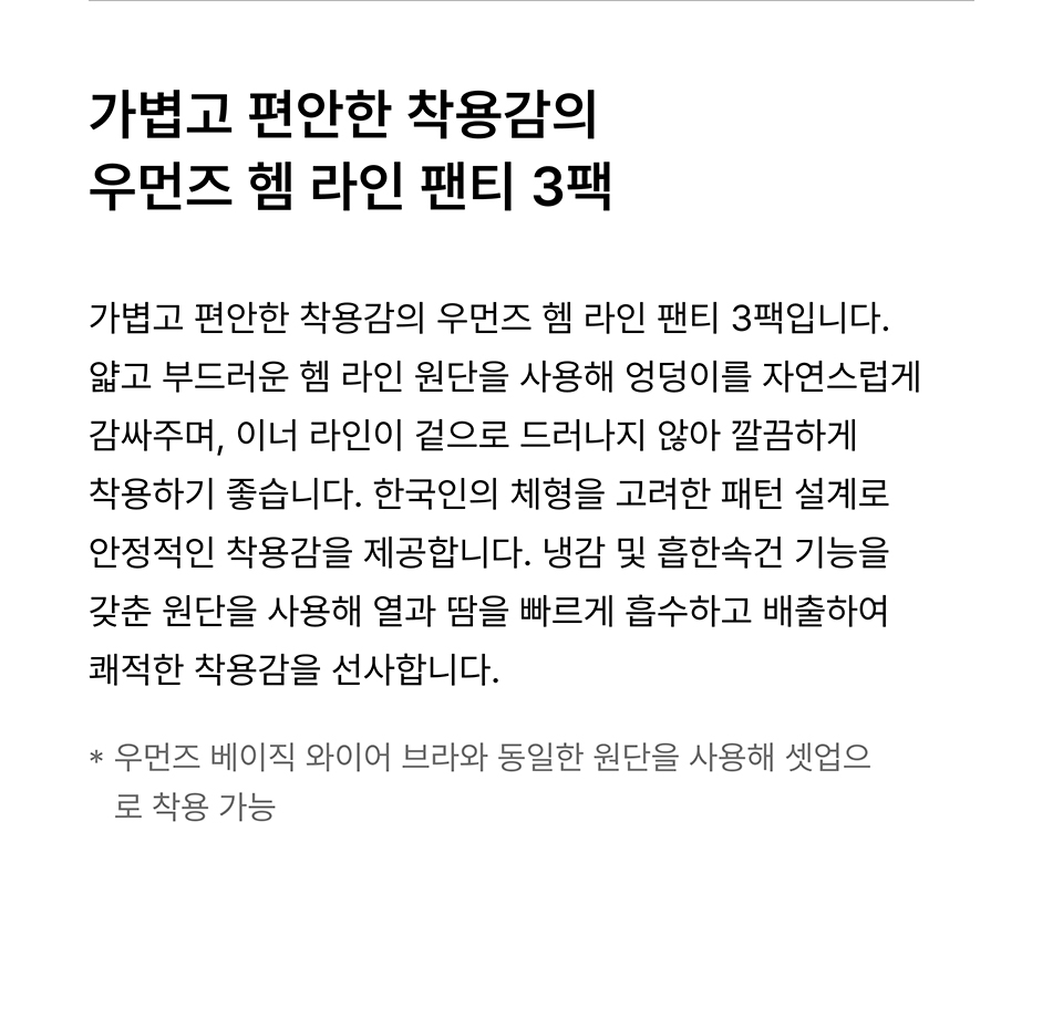 우먼즈 헴 라인 팬티 3팩