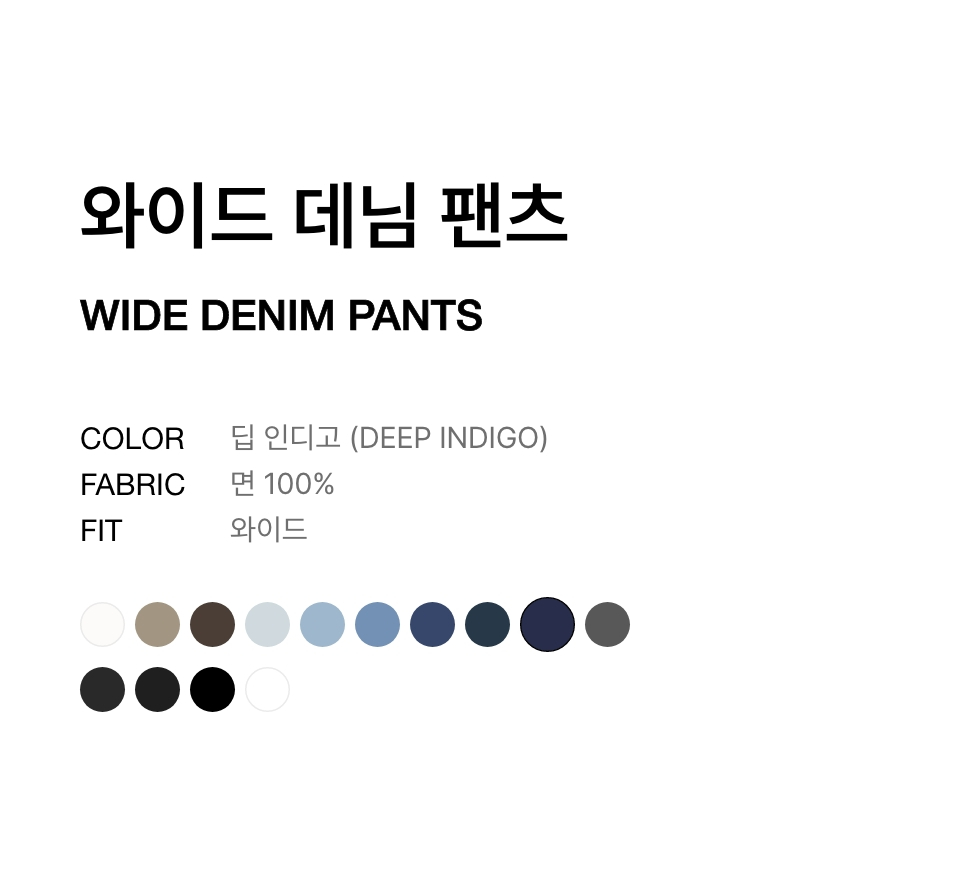 와이드 데님 팬츠 [딥 인디고]