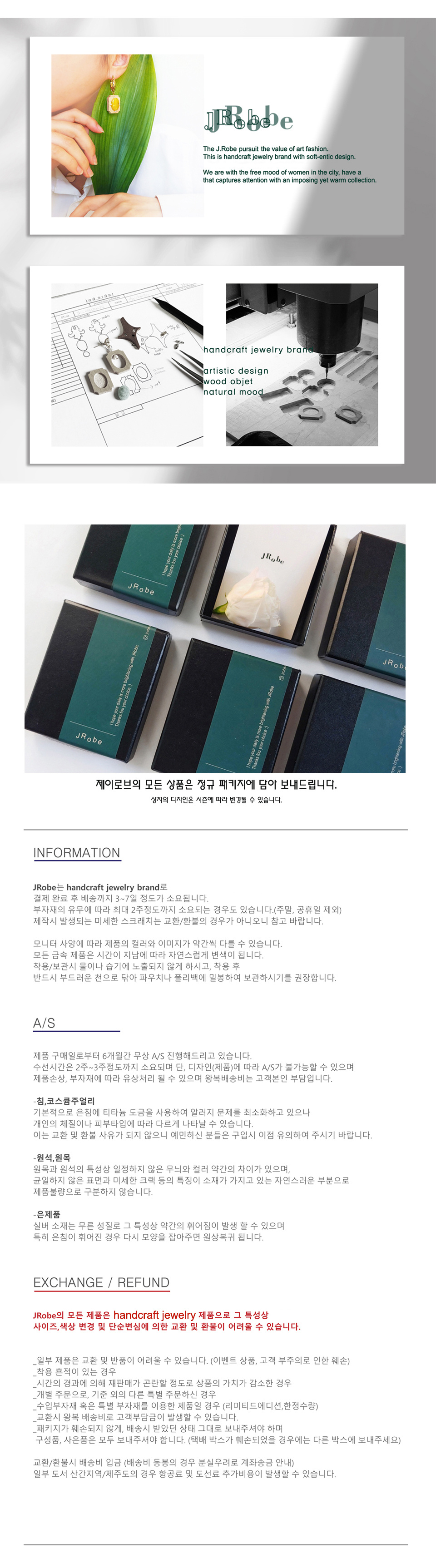 제이로브(JROBE)는 유행을 따르기보다는 일상에 감성을 채워 줄 수 있는 패션과 공예를 접목한 아트 주얼리를 선보이는 브랜드입니다. 금속적 표현을 넘어 유니크한 디자인과 특유의 소재감으로 매 시즌 새로운 컬렉션을 전개합니다.