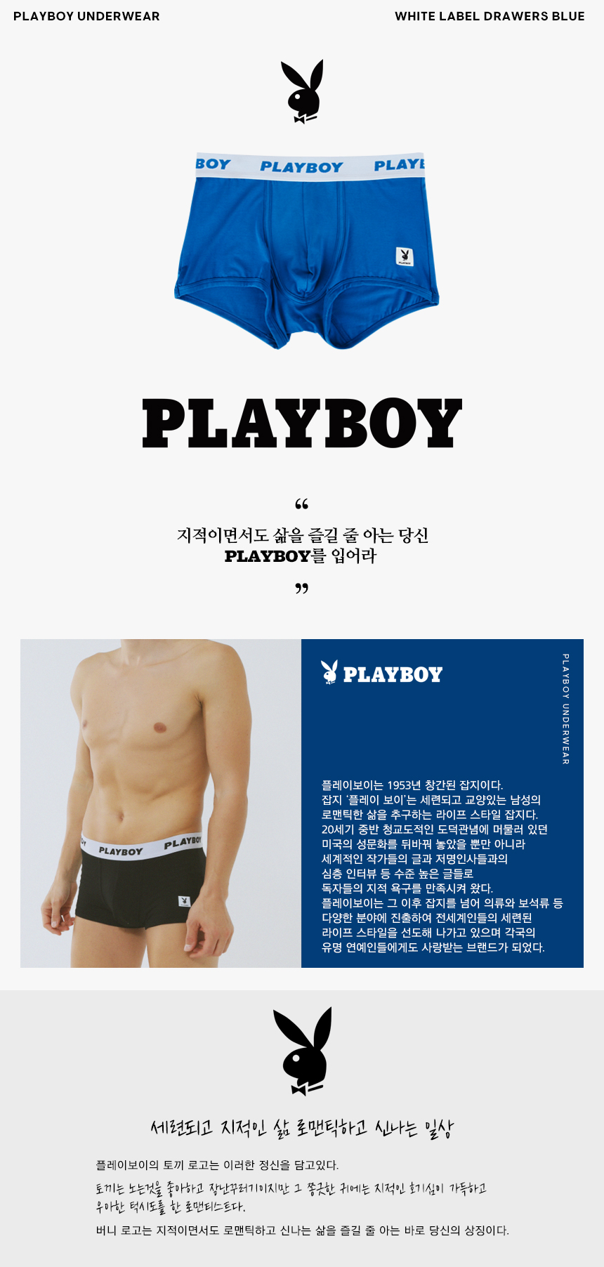플레이보이(PLAYBOY)는 잡지를 넘어 의류와 주얼리 등 다양한 분야에 진출하여 전 세계인들의 세련된 라이프스타일을 선도하고 있습니다. 플레이보이의 토끼 로고는 세련되고 지적인 삶, 로맨틱하고 신나는 인생을 상징합니다.