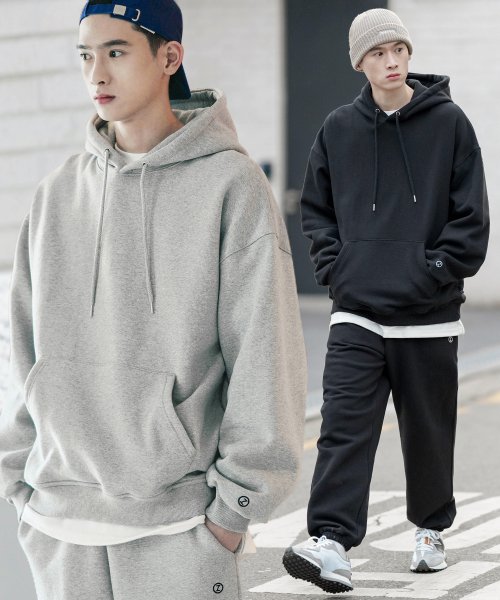 로그 오버핏 투웨이 기모 후드집업 6종 블랙 YHHD2462