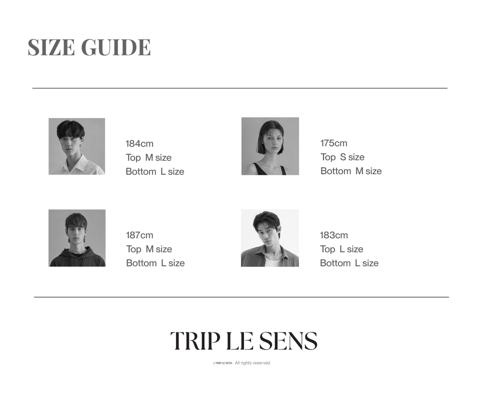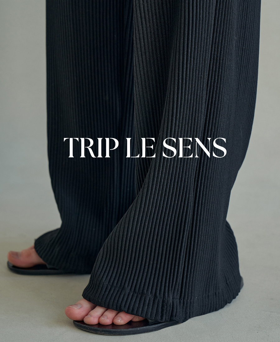 트립 르 센스(TRIP LE SENS)의 브랜드의 방향성. '의복은 그저 착용하는 것이 아닌, 자기 주체를 표현하는 감각의 형상화'입니다. 매 시즌 현대의 흐름과 과거의 장점을 특정하여 "텍스처의 소재 감각"과, 그에 맞는 "특유의 실루엣" 표현에 집중합니다.