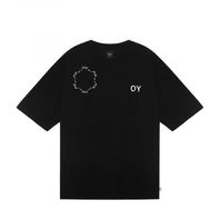 테리 라운드 로고 브이넥 티-블랙