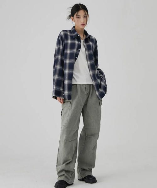 타탄 포켓 체크 셔츠 오버핏 3color