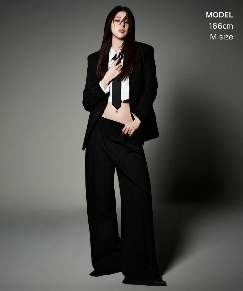 [한소희 PICK] 우먼즈 로 웨이스트 딥 턱 엑스트라 와이드 히든 밴딩 슬랙스 [블랙]