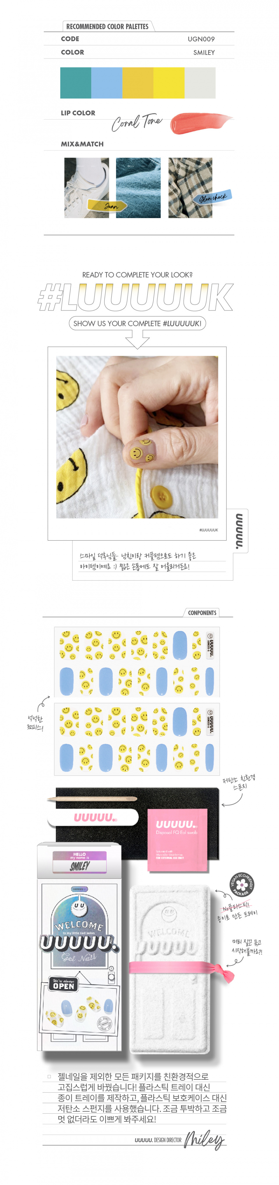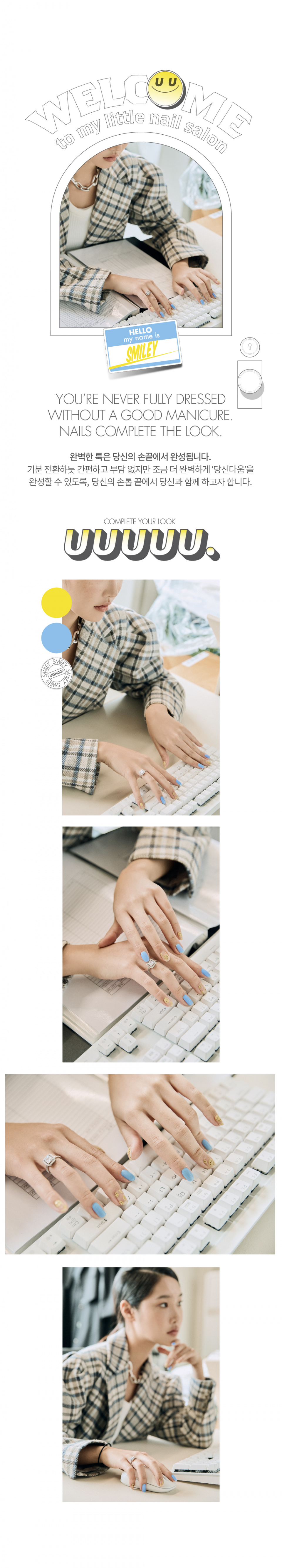 유유유유유(UUUUU.)는 'express U, for U, love U, with U UUUUU.'라는 슬로건 아래, 당신을 위한 쉽고 혁신적이며 감각적인 네일 제품을 선보이는 브랜드입니다.
