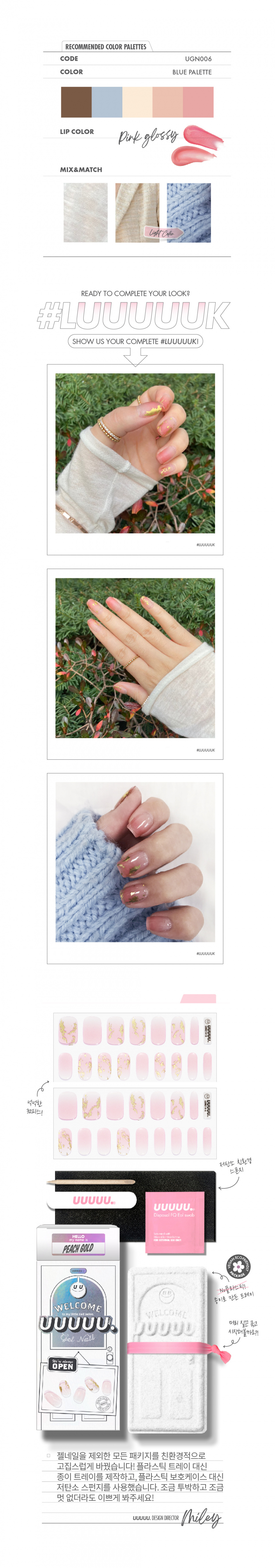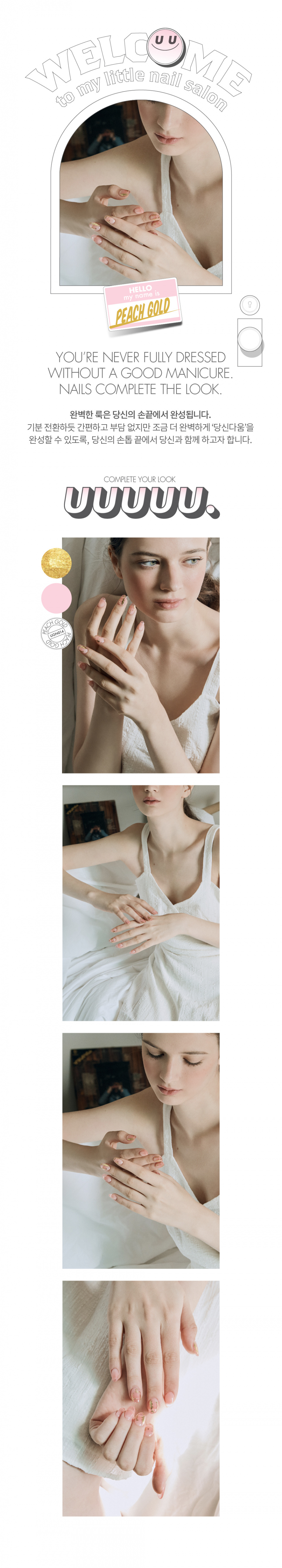 유유유유유(UUUUU.)는 'express U, for U, love U, with U UUUUU.'라는 슬로건 아래, 당신을 위한 쉽고 혁신적이며 감각적인 네일 제품을 선보이는 브랜드입니다.
