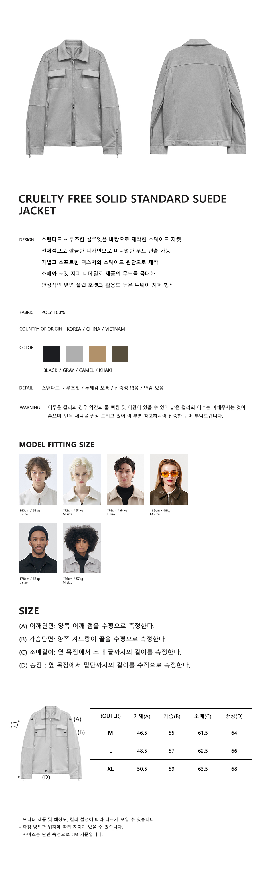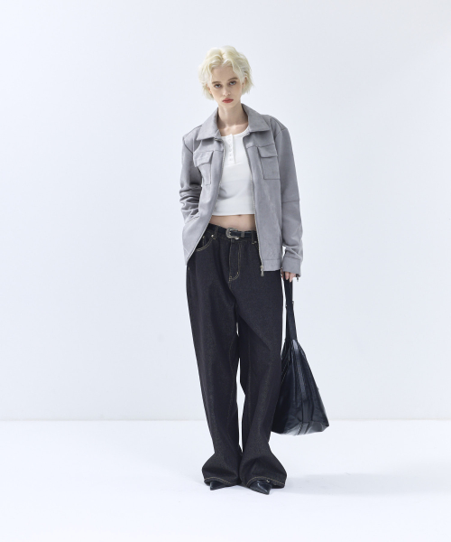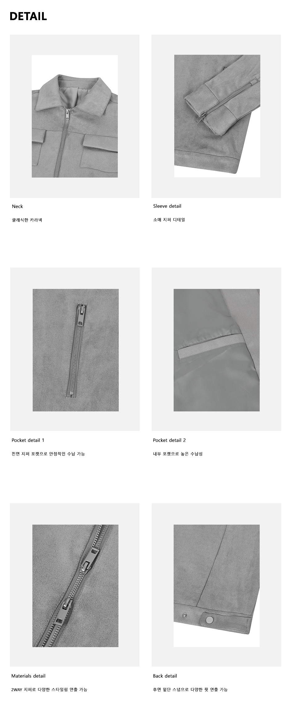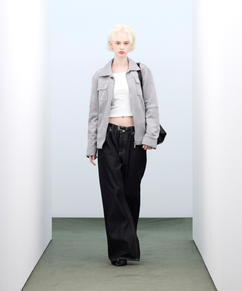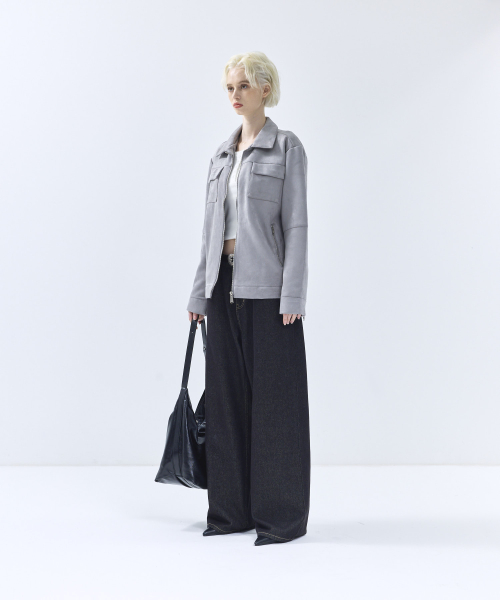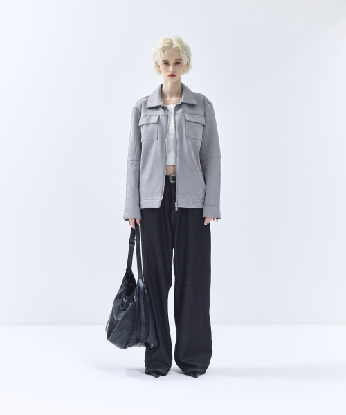 86-IRO072 크루얼티프리 솔리드 스탠다드 스웨이드 자켓 그레이