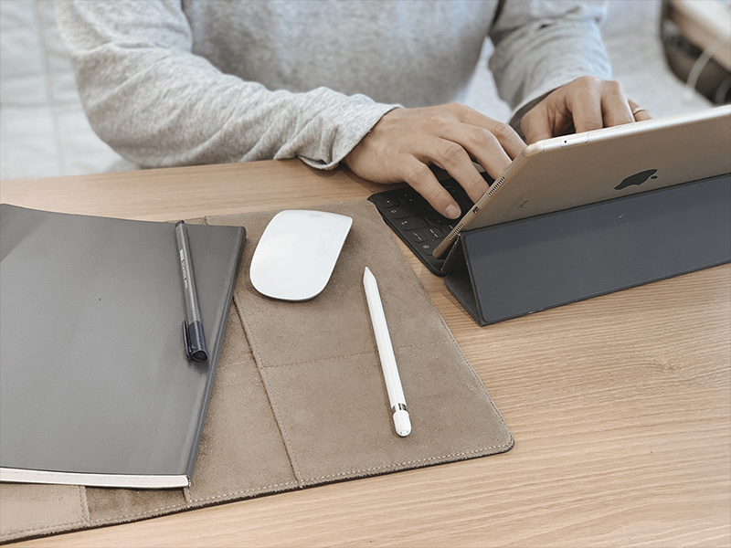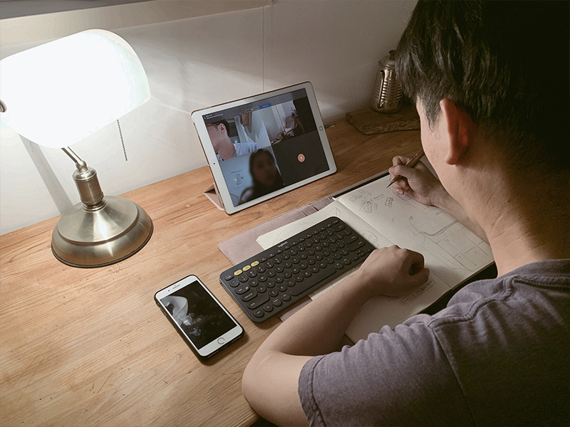 "태블릿, 노트북등으로 화상미팅 /그룹 프리젠테이션을 할 때 수정, 보완, 제안할 점은 그 자리에서 종이에 메모합니다. 메모한 내용은 추후에 타이핑하여 회의 참석자들과 공유하죠." |
