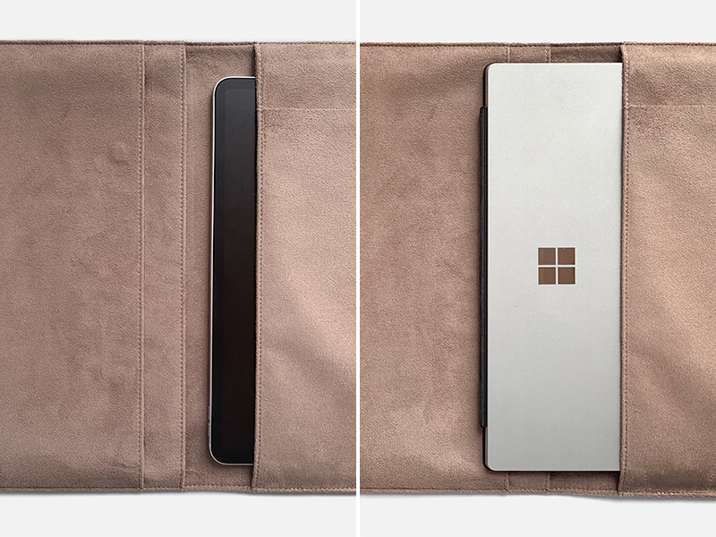 스웨이드 재질의 내피는 필기하는 손과 맞닿는 부분에 부드럽고 따뜻한 감촉을 전달합니다. 스웨이드는 융단털과 달리 섬유가 짧아 섬유가 기기에 박히거나 끼지 않습니다. 접착, 박음질 또한 30년 동안 럭셔리 브랜드 제품을 만들고 있으신 깐깐한 국내 장인의 손을 거치기에 커버를 펼칠 때 마다 고급스러운 마감을 확인하실 수 있습니다. |