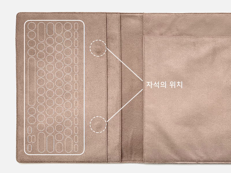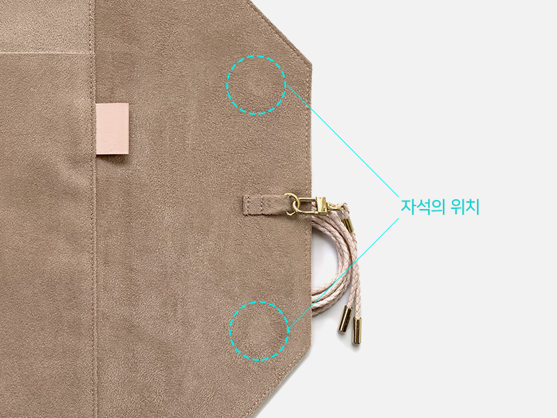익스텐션을 닫을 때 포켓에서 물건들이 떨어지지 않도록 포켓 끝단에 자석을 넣었습니다. 덕분에 작은 기기들도 포켓안에 고정되어 흔들림 없이 보관할 수 있습니다. |