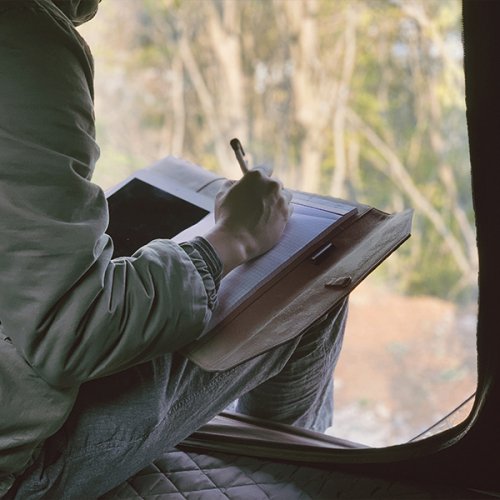 "재택근무로 일하다보니 어디서든(달리는 기차 안에서도) 태블릿을 사용해 일을 합니다. 손으로 아이디어를 끄적거릴 노트도 한권 챙겨다녀요." |