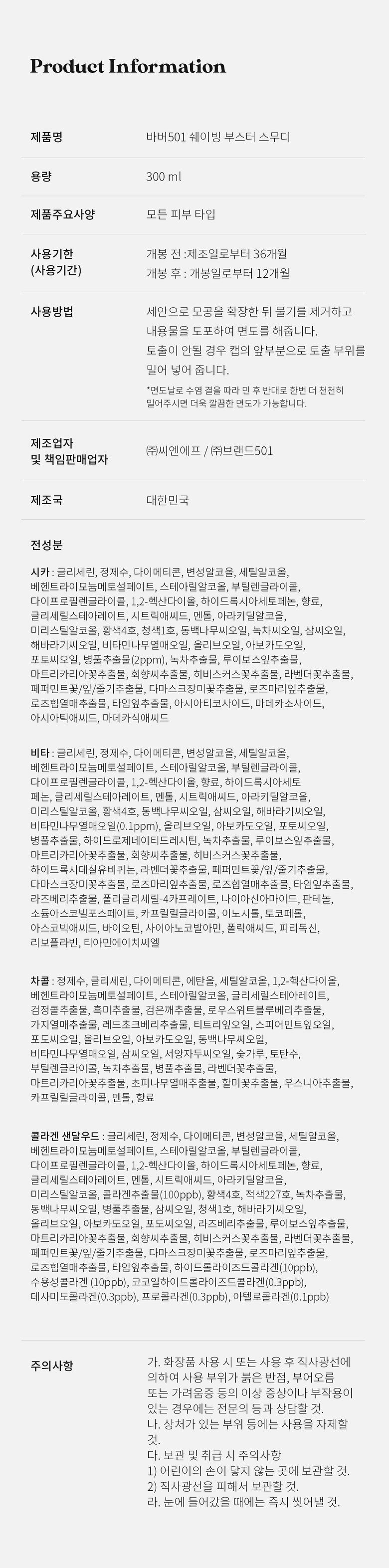 쉐이빙부스터 스무디 대용량 300ml 4종 (+울트라 슬릭 비타)