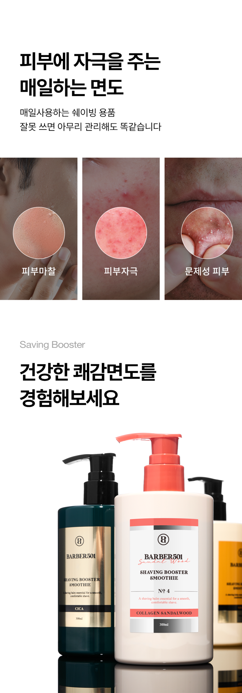 바버 501(BARBER 501)은 면도를 하게 되는 51%의 피부를 집중 보호하고 관리하는 특별한 쉐이빙 케어 브랜드입니다.