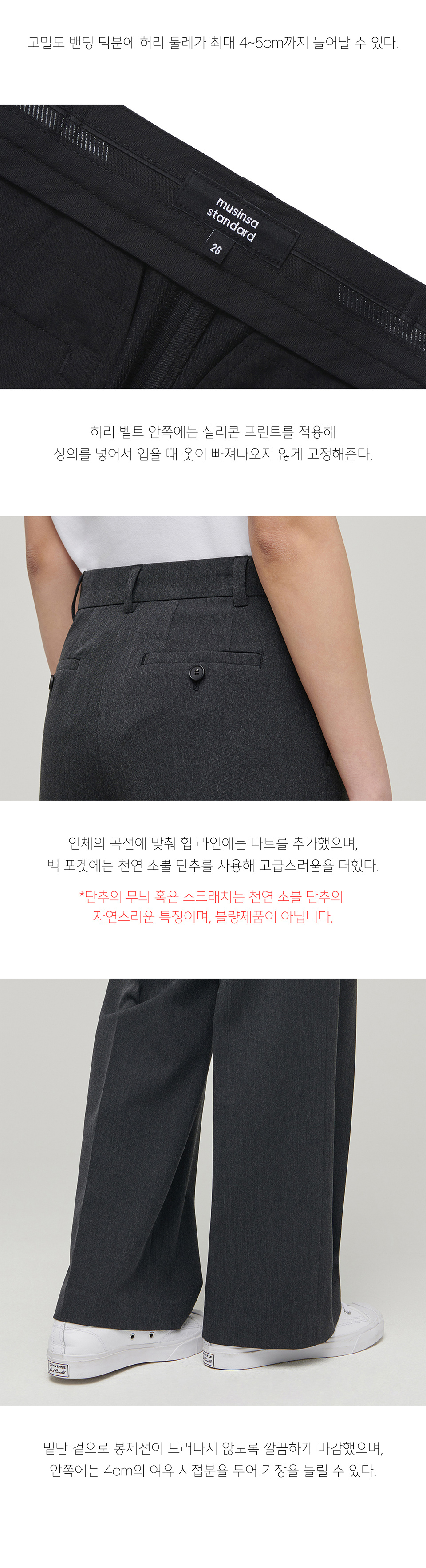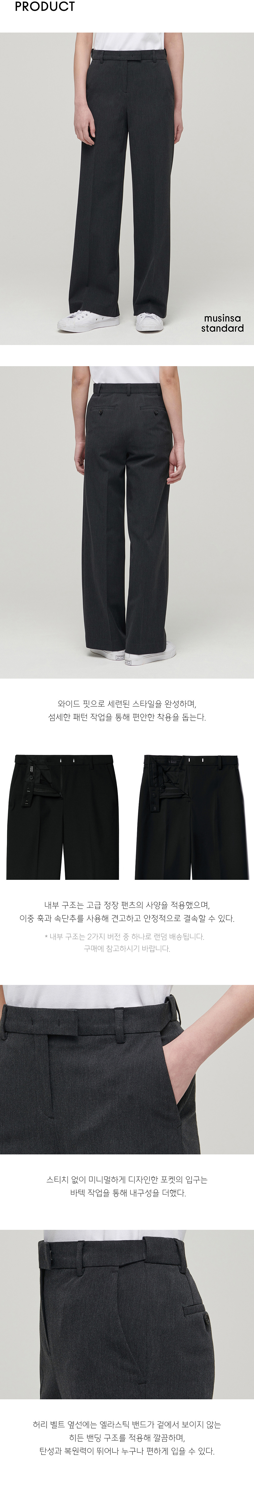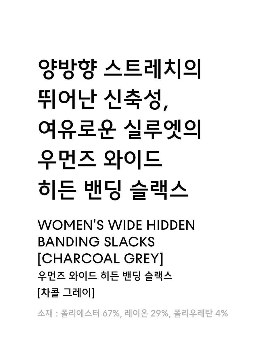 우먼즈 와이드 히든 밴딩 슬랙스 [차콜 그레이]