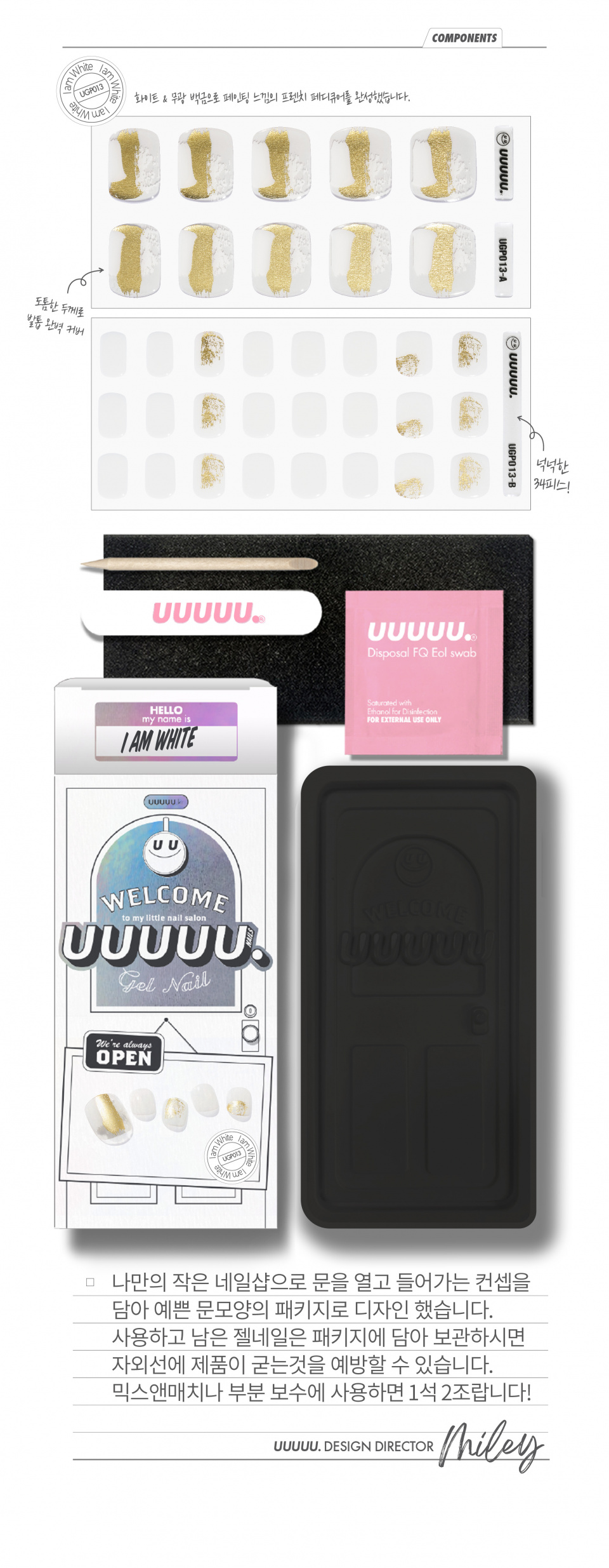 유유유유유(UUUUU.)는 'express U, for U, love U, with U UUUUU.'라는 슬로건 아래, 당신을 위한 쉽고 혁신적이며 감각적인 네일 제품을 선보이는 브랜드입니다.