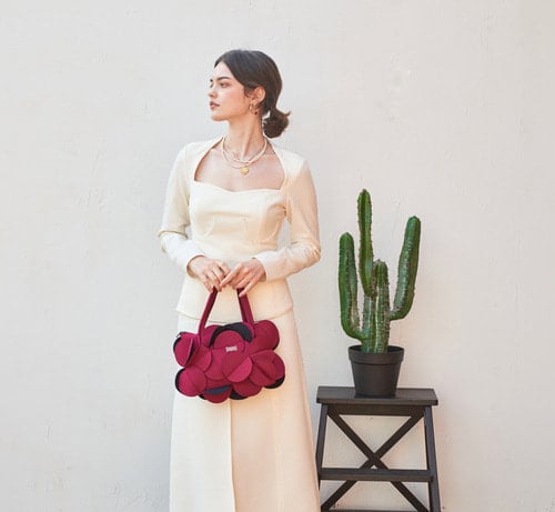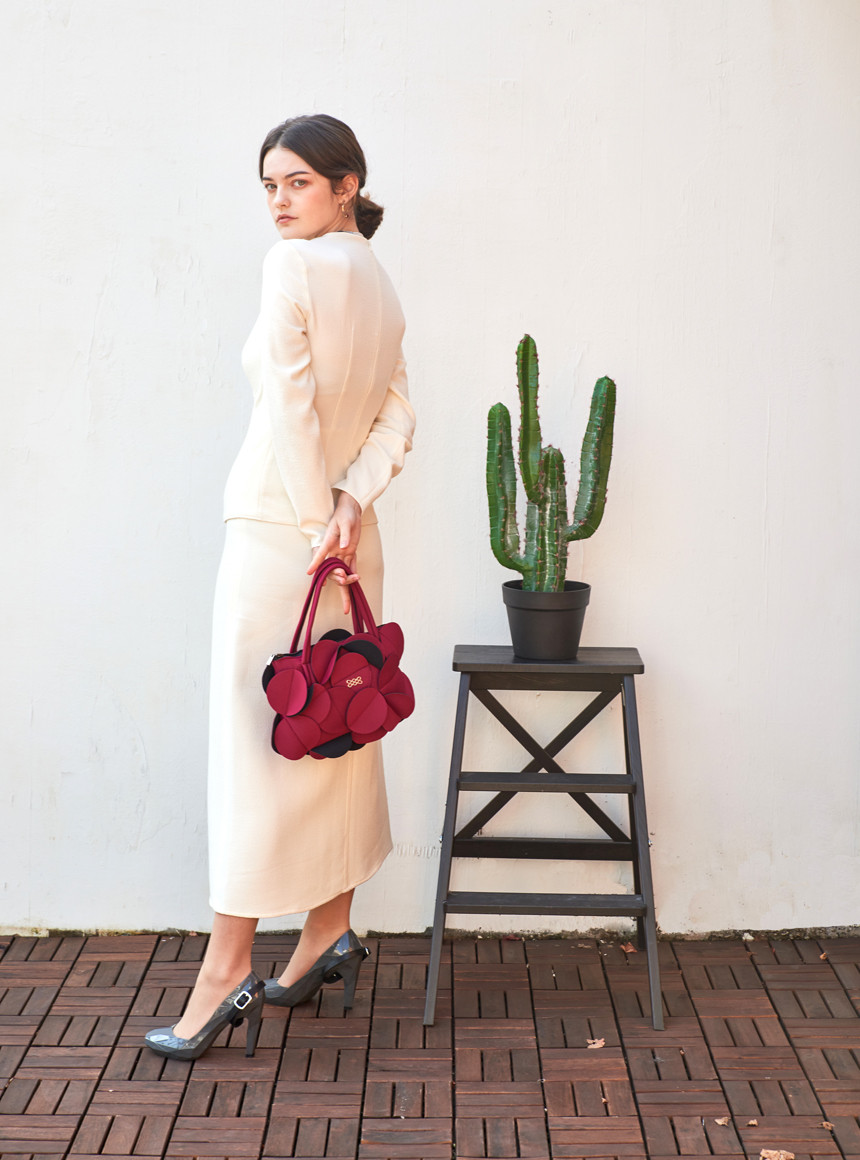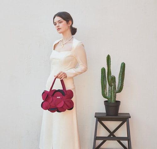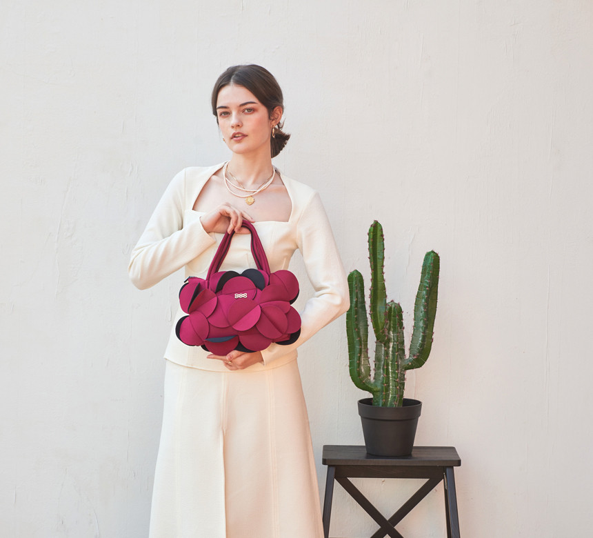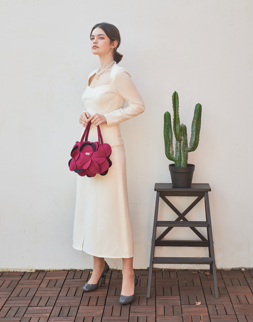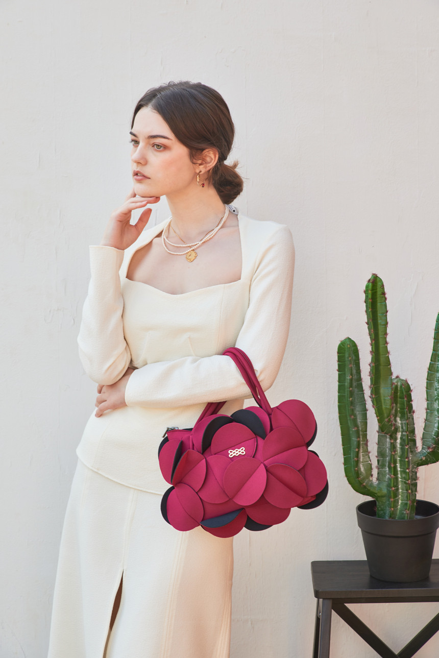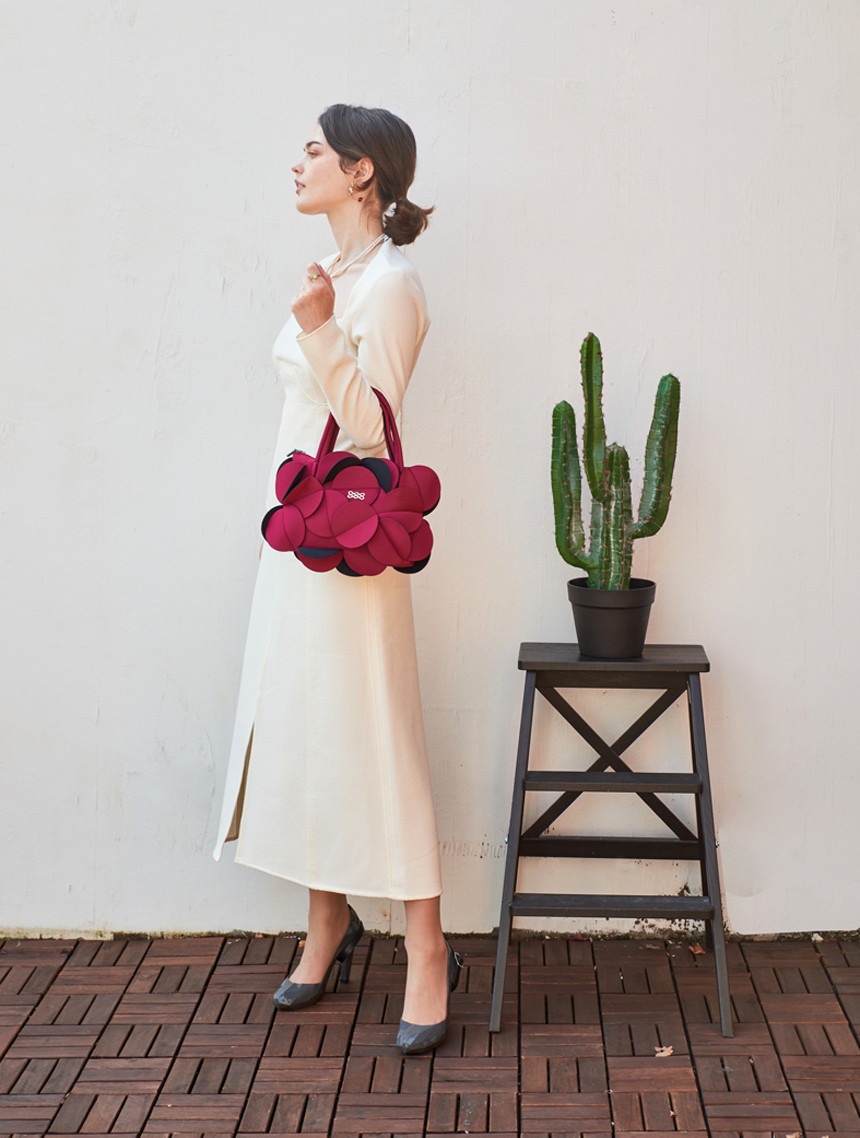 네오프렌 소재로 만들어진 꽃을 연상시키는 토트백입니다.