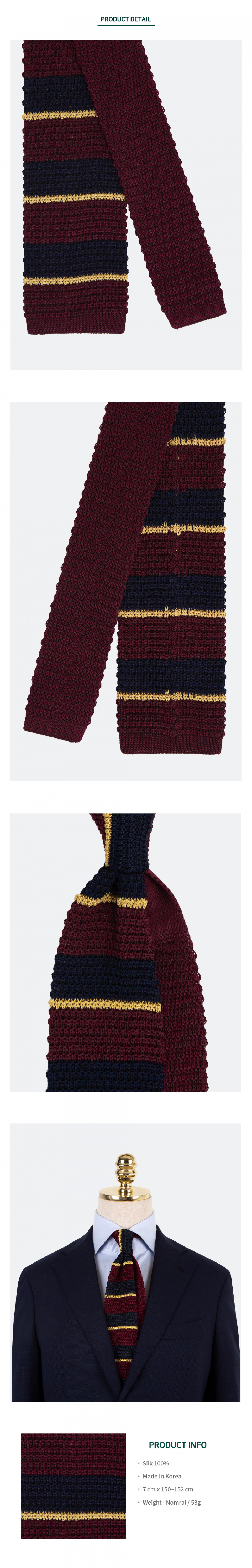 실크 프레피 니트타이 와인네이비옐로우