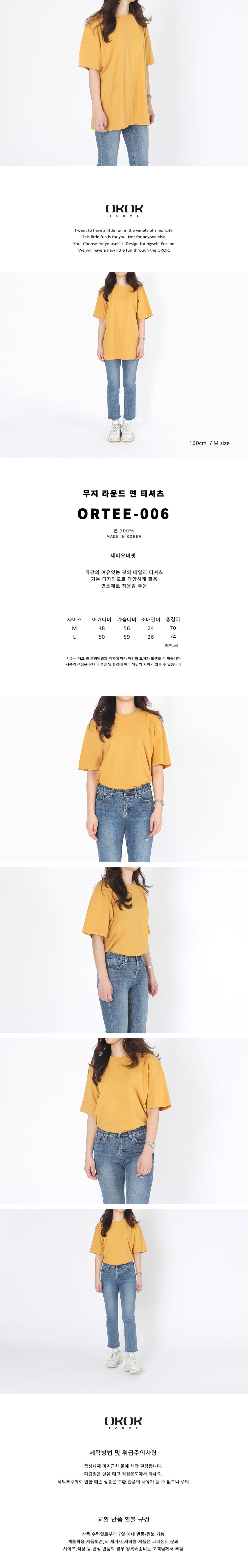오버핏 무지 면티셔츠 ORTEE-006 머스타드