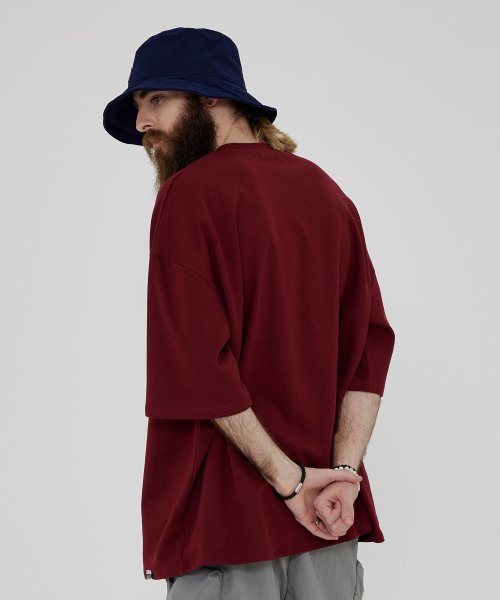CB 오버 박스 반팔티 (와인)