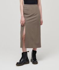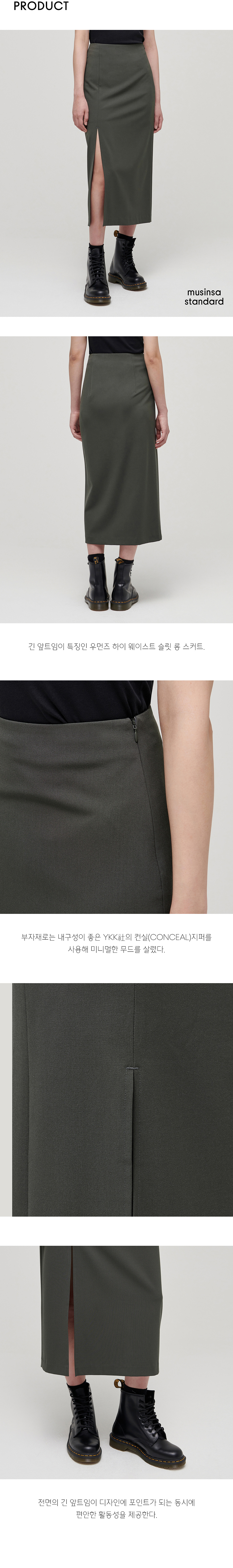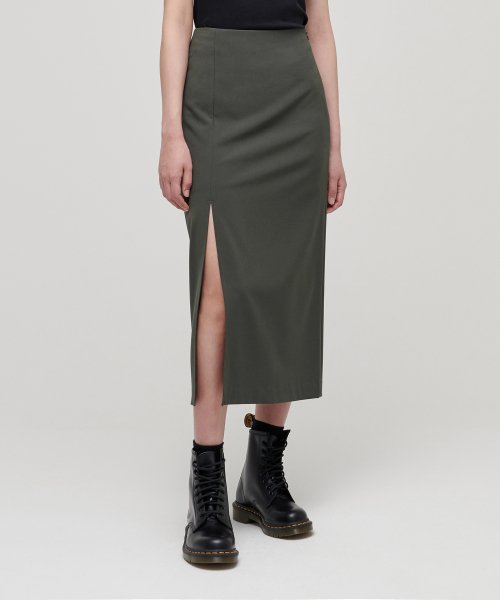 우먼즈 하이 웨이스트 슬릿 롱 스커트 [더스티 카키]