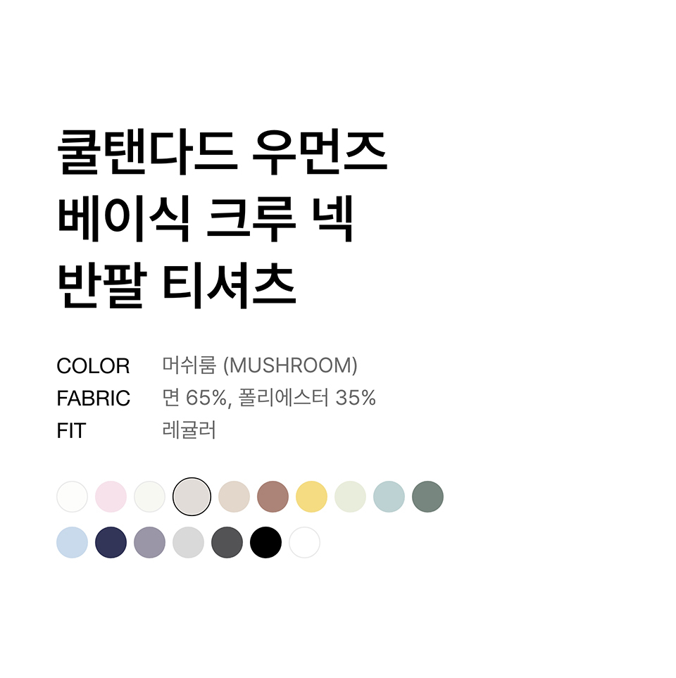 [쿨탠다드] 우먼즈 베이식 크루 넥 티셔츠 [머쉬룸]