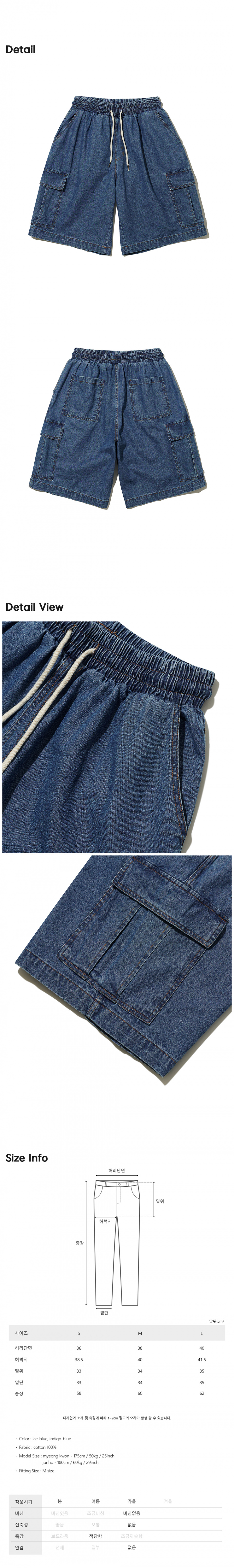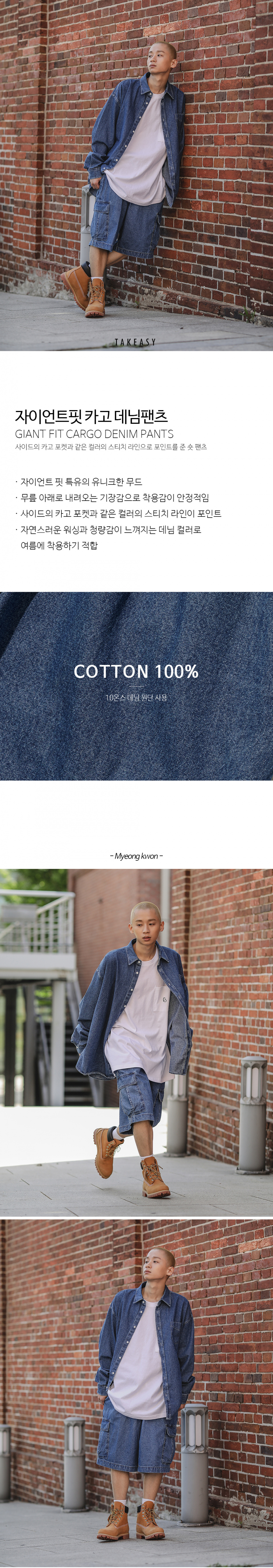 자이언트핏 카고 데님팬츠(인디고블루)