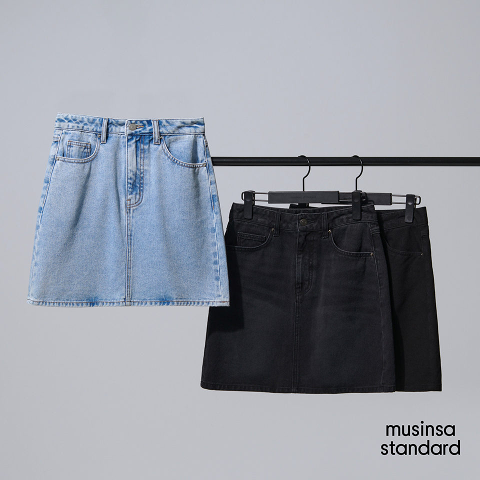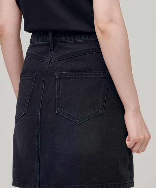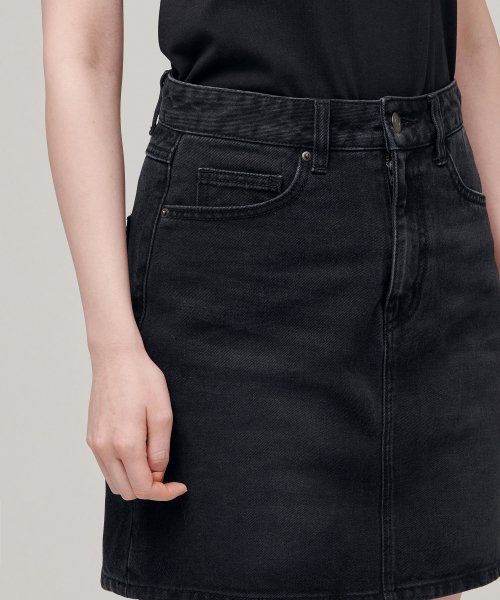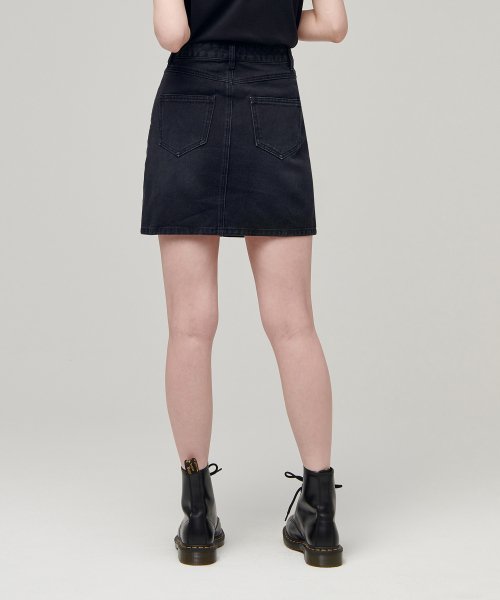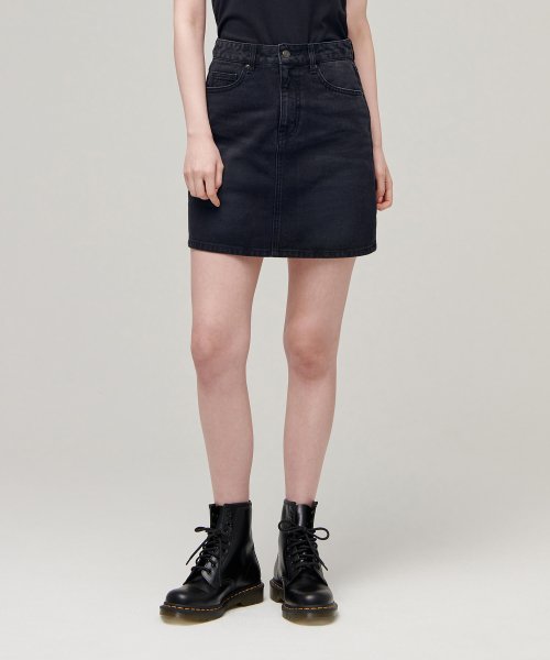 우먼즈 데님 미니 스커트 [워시드 블랙]