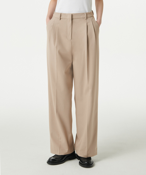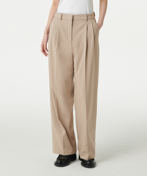 우먼즈 라이트웨이트 하이 웨이스트 와이드 히든 밴딩 슬랙스 [베이지]