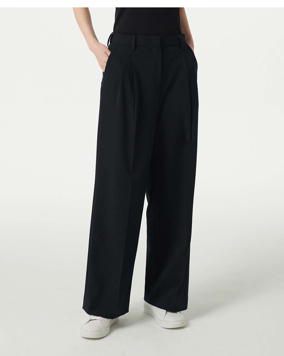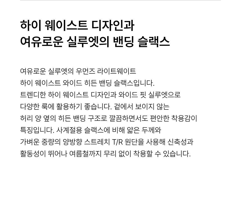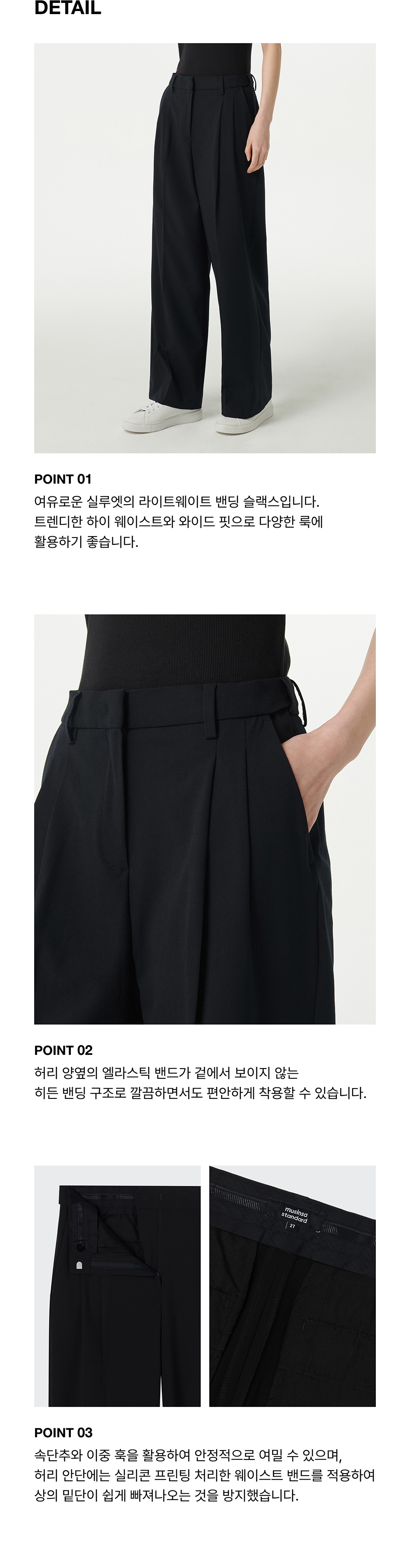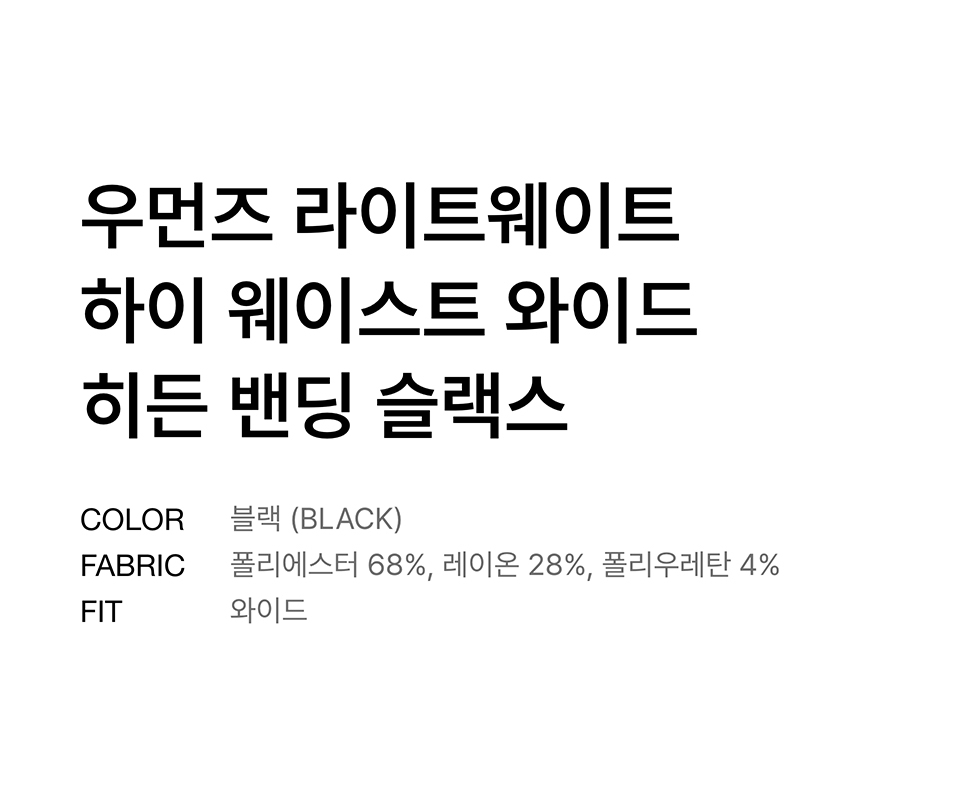 우먼즈 하이 웨이스트 와이드 히든 밴딩 슬랙스 [블랙]