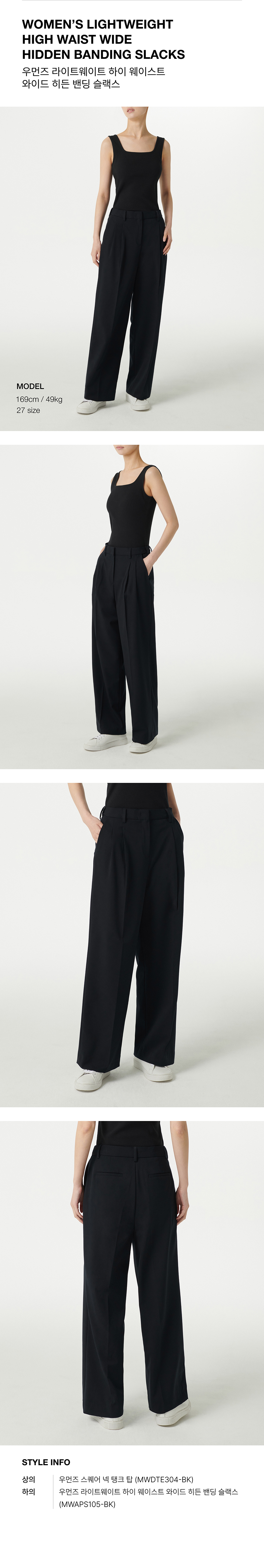 우먼즈 라이트웨이트 하이 웨이스트 와이드 히든 밴딩 슬랙스 [블랙]